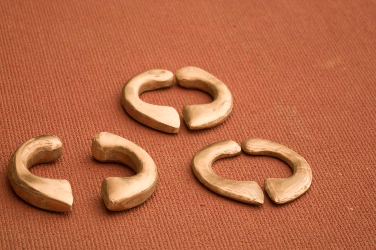 We first approached William and Shannon Cannings of the Texas Tech University School of Art for their help in creating a concrete mould. We believed that concrete was the best option as it was an inexpensive material with high plasticity, which would hopefully allow us to overcome our lack of artistic skill. The Cannings immediately suggested casting the haltēres in bronze using the lost wax method for a more authentic recreation. While not a perfect reproduction, this would provide a more similar weight and material to some of the weights used in antiquity.