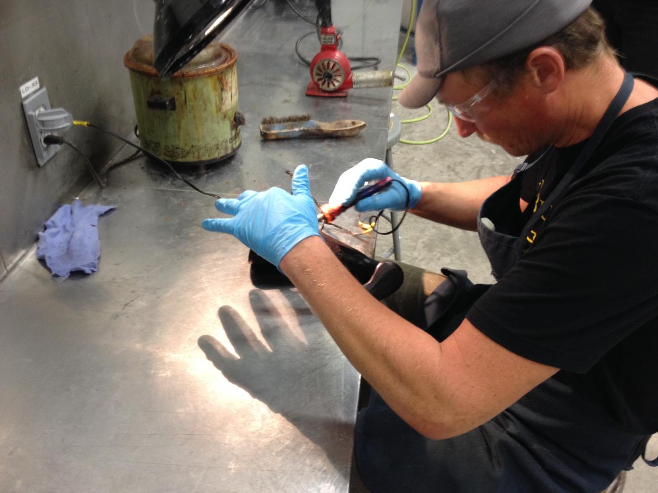 If the School of Art had not already scheduled a bronze pour, this experiment would have been prohibitively expensive, since heating the bronze and the furnaces for a single project was not feasible. While the materials themselves, such as wax and bronze, silicone investment, and tools were a controllable cost, the time Will and Shannon Cannings spent on the project was not. As they are featured artists, their help was vital to completion and they donated the time spent on this project. Certainly, a benefit of having trained artists familiar with the university’s equipment was that the project was conducted safely and efficiently. Use of the furnace, for example, would not have been possible or safe without professionals.
