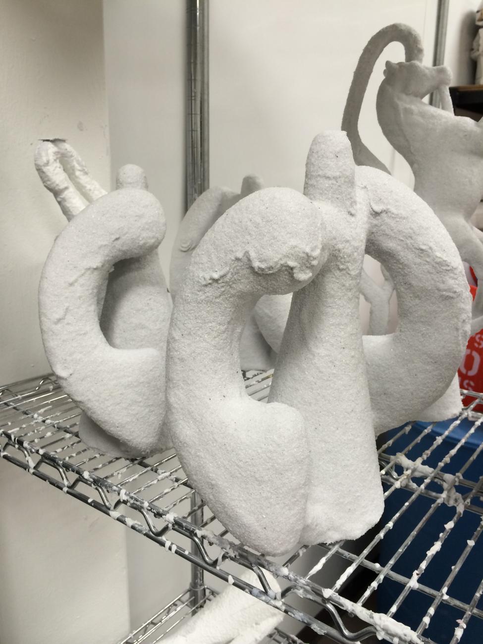 The steps taken to create the haltēres were: first, creating the wax versions which were proportionally the same weight as the finished bronze objects; second, spruing and investment to make the shell around the wax versions; and, finally, the burnout of the wax and the metal casting (See Figures 6-10).