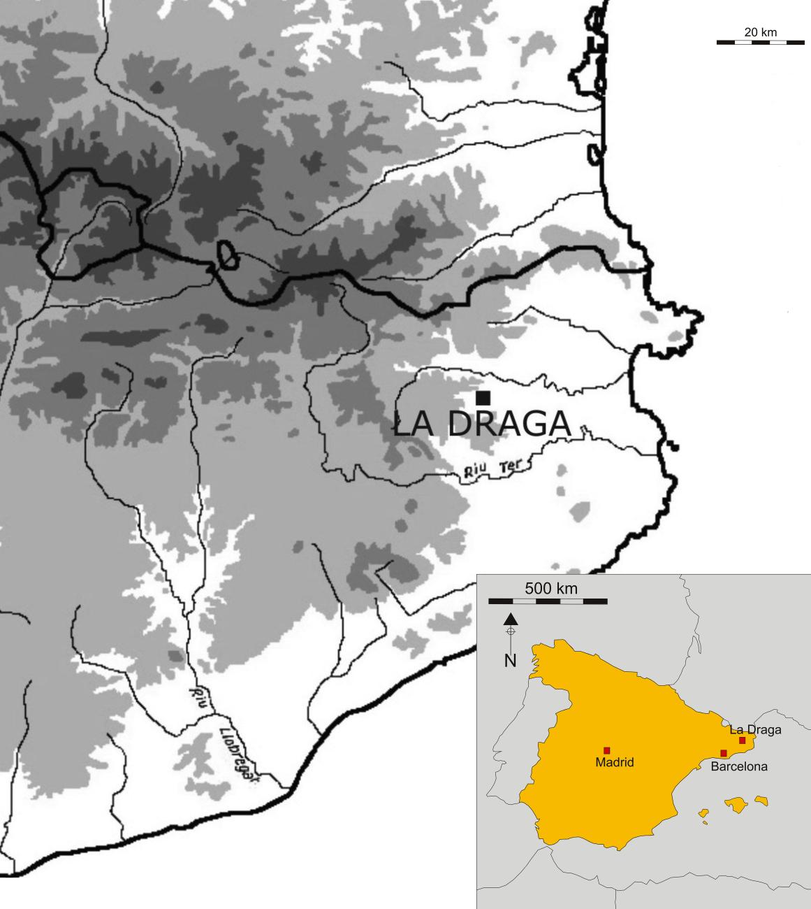 La Draga is a lake dwelling located in the North-East of the Iberian Peninsula, on the eastern shore of l’Estany de Banyoles (Lake Banyoles). This small lake is 170m above sea level, 40km from the Mediterranean coast, and 50km south of the Pyrenees. The settlement of La Draga is located half-way along the eastern shore of Lake Banyoles. The Lake has a figure-of-eight shape and the settlement stood at the narrowest point. In topographical terms, the area was a peninsula, and the ground sloped steadily from east to west and from north to south (See Figure 1).