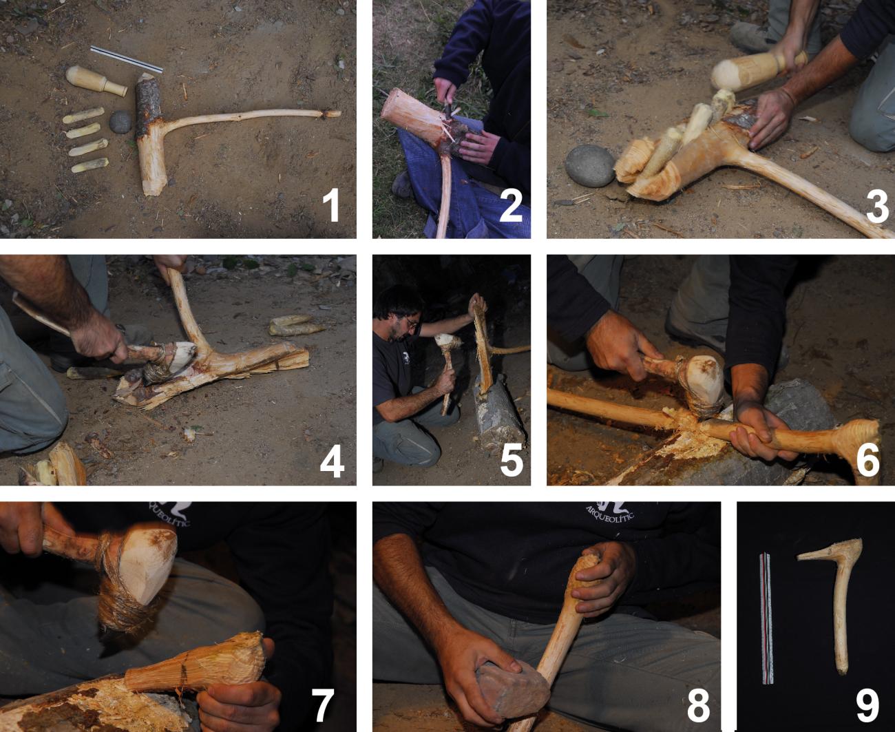 The experimental work in this instance has a double objective. On the one hand to determine the production process and, on the other hand, to verify their function. The archaeological sticks display facets and various types of traces on their surfaces, some related to its manufacture and others being the result of use. Experimentation has shown we can discriminate one from the other, which has confirmed their use as digging sticks (See Figure 3).