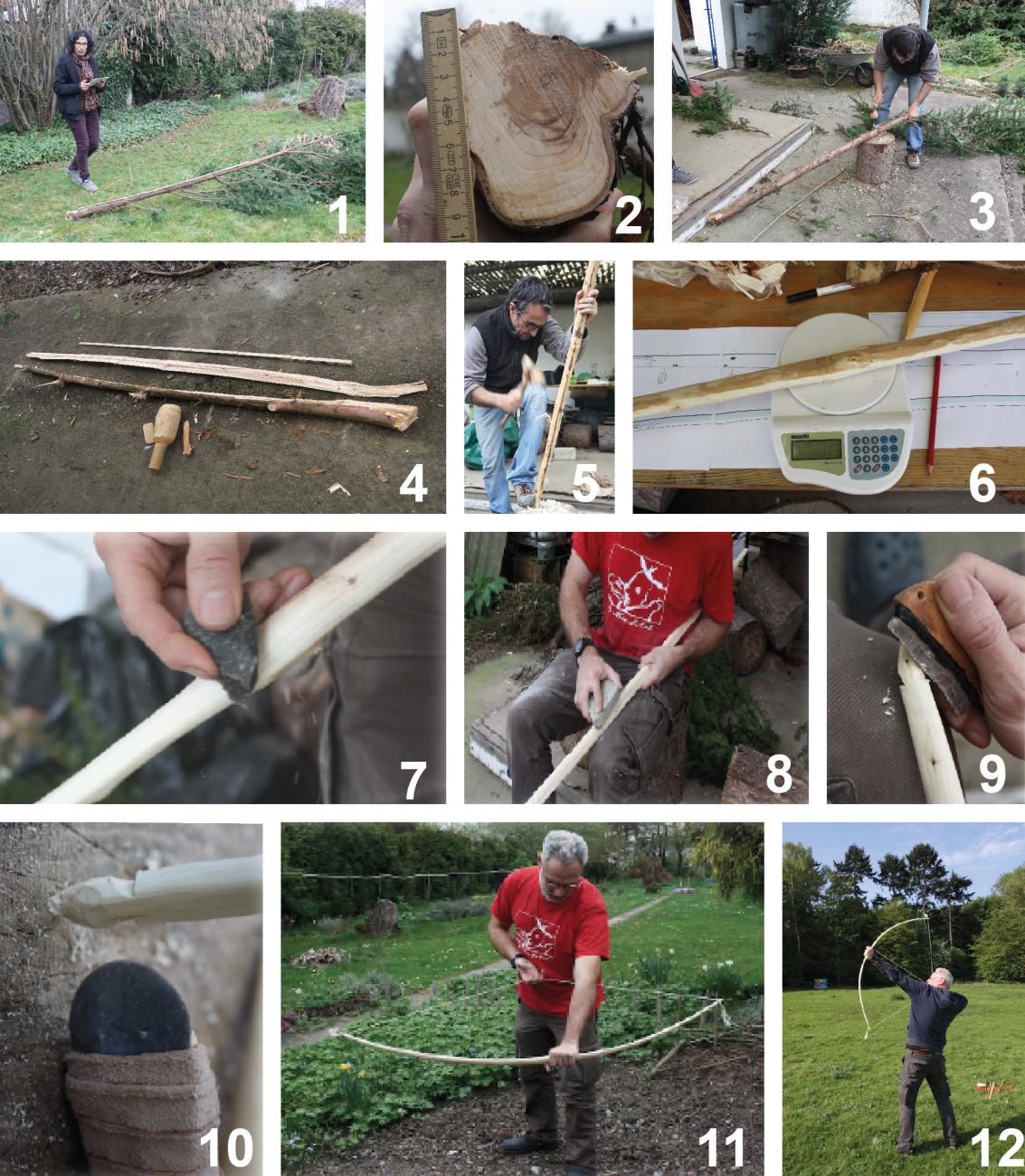 Almost no tool marks can be recognized on their surface. However, through anatomical inspection, it has been stated that all those bows found at La Draga were made of a segment of branch or trunk of yew. Those segments correspond to the last tree-rings of the stem (the ones that tend to be more flexible) with one face corresponding to the last growth ring. In all the cases, the bark was stripped from the surface and its small twigs removed. The other faces were elaborated through splitting, roughing down, and polishing.