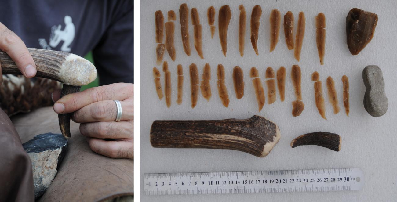 - Testing the hypothesis that the deer antler objects were tools used for knapping.