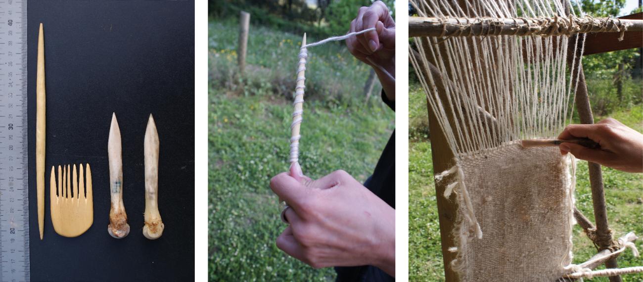 Textile technology is another of the topics of experimentation. Our objective has been to determine if the instruments from La Draga were used for textile production.