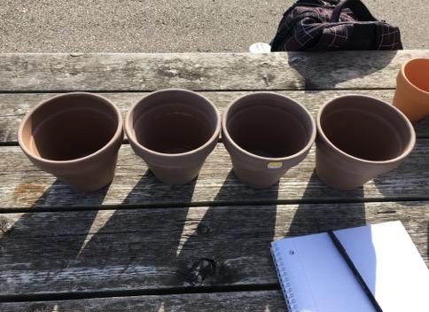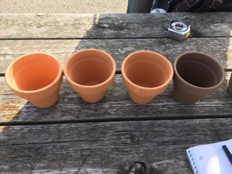 For this experiment, eight clay pots were purchased and treated as replicas of ancient vessels for the purposes of the investigation. Four of the pots were of the “small” type with the dimensions of 10.16 cm x 11.43 cm and were a lighter clay colour than the larger pots (See Fig. 4). The remaining four pots were larger with dimensions 13.34 cm x 15.24 cm and were darker in colour (See Fig. 5). These ceramic pots are typically used for potting plants and flowers; therefore, they contained holes in the base. The holes in the base of the pots were covered with duct tape to prevent the contents (oats or water) from leaking out. A measuring tape was used to record the diameters and heights of the pots and also the height at which the vessels were dropped. The vessels were dropped onto a concrete pavement.