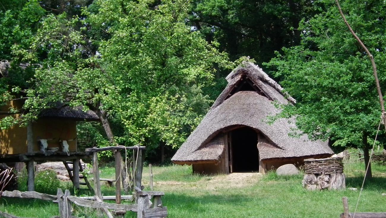 The Bronzezeithof is an open-air museum recreating the environment of a Bronze Age farm in a rural setting near the Dutch border (See Figure 1). The museum has been in operation for 14 years, exhibiting a reproduction of a Bronze Age long house, workshops and areas set up for various activities, including an upright drill for drilling stone tools, bread ovens, a meat smoker, a recreated burial mound, and garden plots used for growing plants for both cooking and fibres. In addition to metalworking, volunteers at the Bronzezeithof demonstrate textile arts, fire making, stone working, grain processing, and food preparation (See Figure 2).