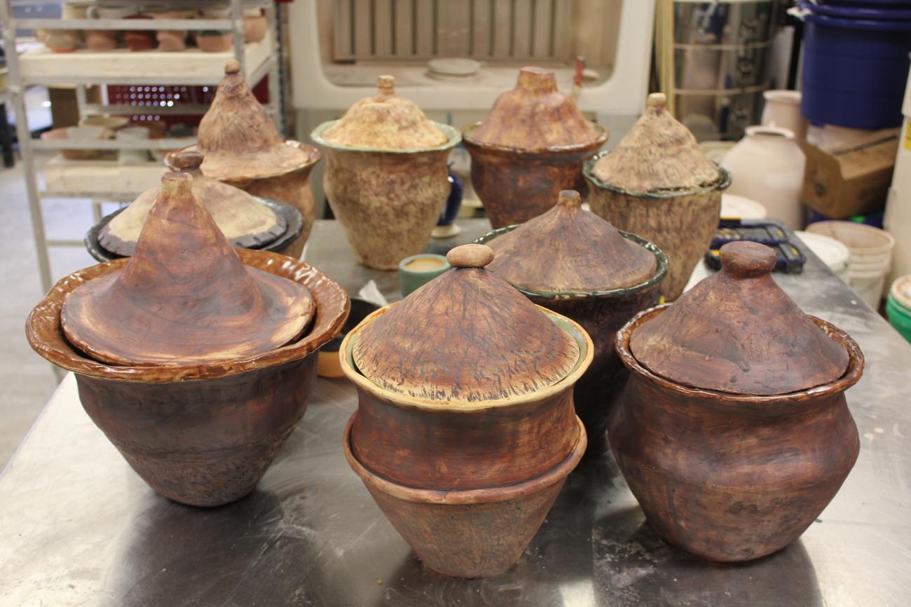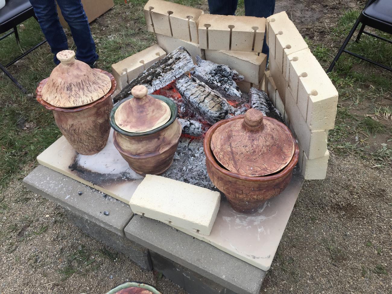 Kahsnitz and Brandl (1984) present a group of ceramic vessels used for eating and drinking at a tavern in Nürnberg, Germany from the early fifteenth century. The main cooking vessels are approximately 20 cm tall, with a wide body and neck. In 2016, the author collaborated with a group of ceramics students at Indiana University East as part of that institution’s You Are What You Eat: Events in Food, Culture, and Diversity event to replicate the cooking vessels and then use them to cook food from medieval recipes. The replication project had three main goals: 1) provide the ceramics students the opportunity to have their pieces used for cooking, expanding their understanding of the ceramic production process to use; 2) present the experience of cooking on a wood hearth for the participants of the You Are What You Eat event; and 3) gain an understanding of medieval food not just as subsistence but as a multi-sensory experience. Carrie Warvel Longley, assistant professor and coordinator of the Fine Arts program, oversaw the students and provided them with a template to produce the vessels based on those in Kahsnitz and Brandl (1984, p.32) (See Figure 1). For the cooking replication, five vessels were selected and three were used. The recipes used came from two sources: the Inntalkochbuch, c. 1500 (Danner, 1970), and Le Menagier de Paris, 1393 (Power, 1928).