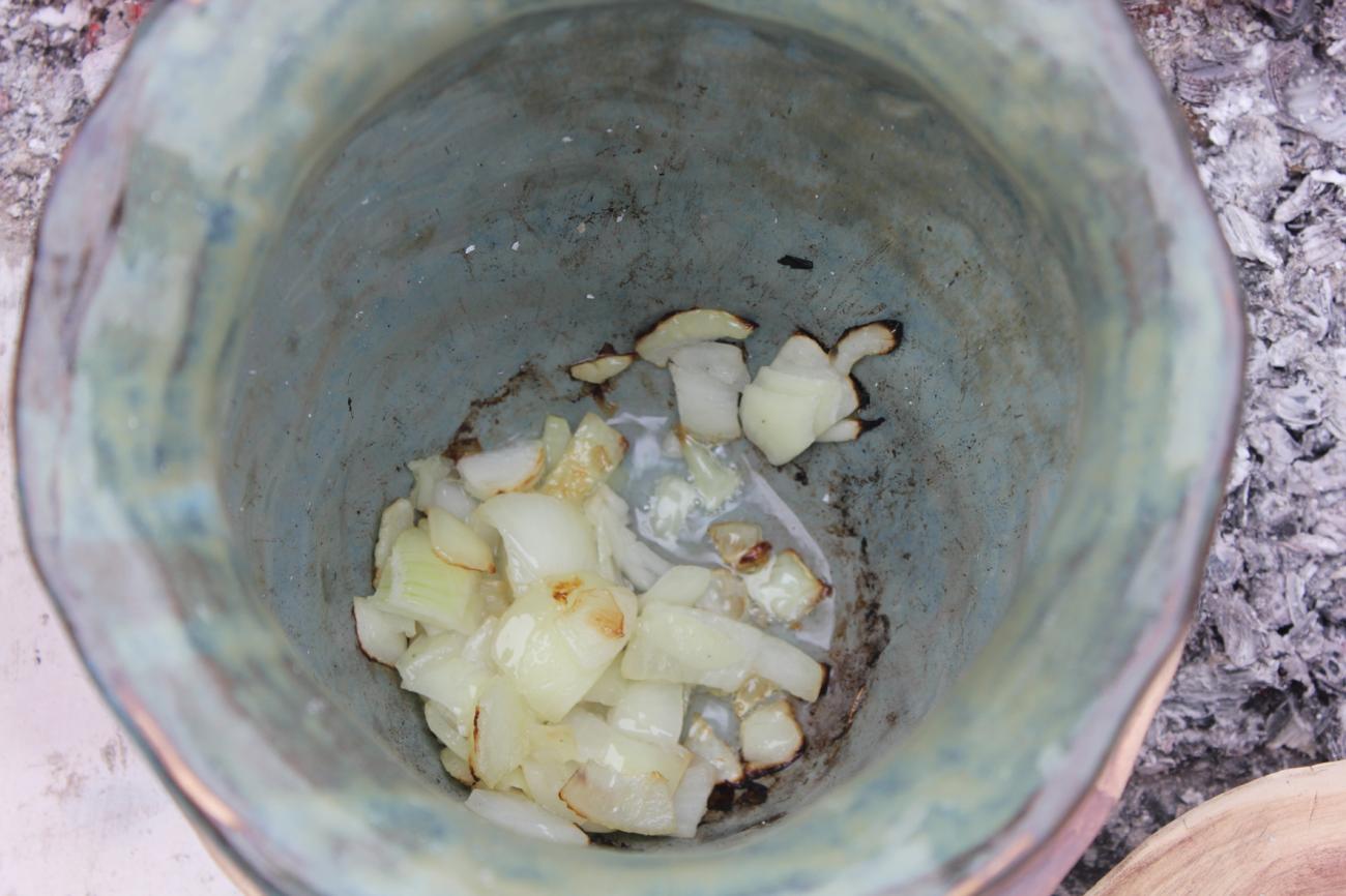 One vessel was used for cooking the onions (See Figure 3) and the second was used to heat the broth (See Figure 4). The broth was then added with the sauce and bread to make the final dish (See Figure 5).
