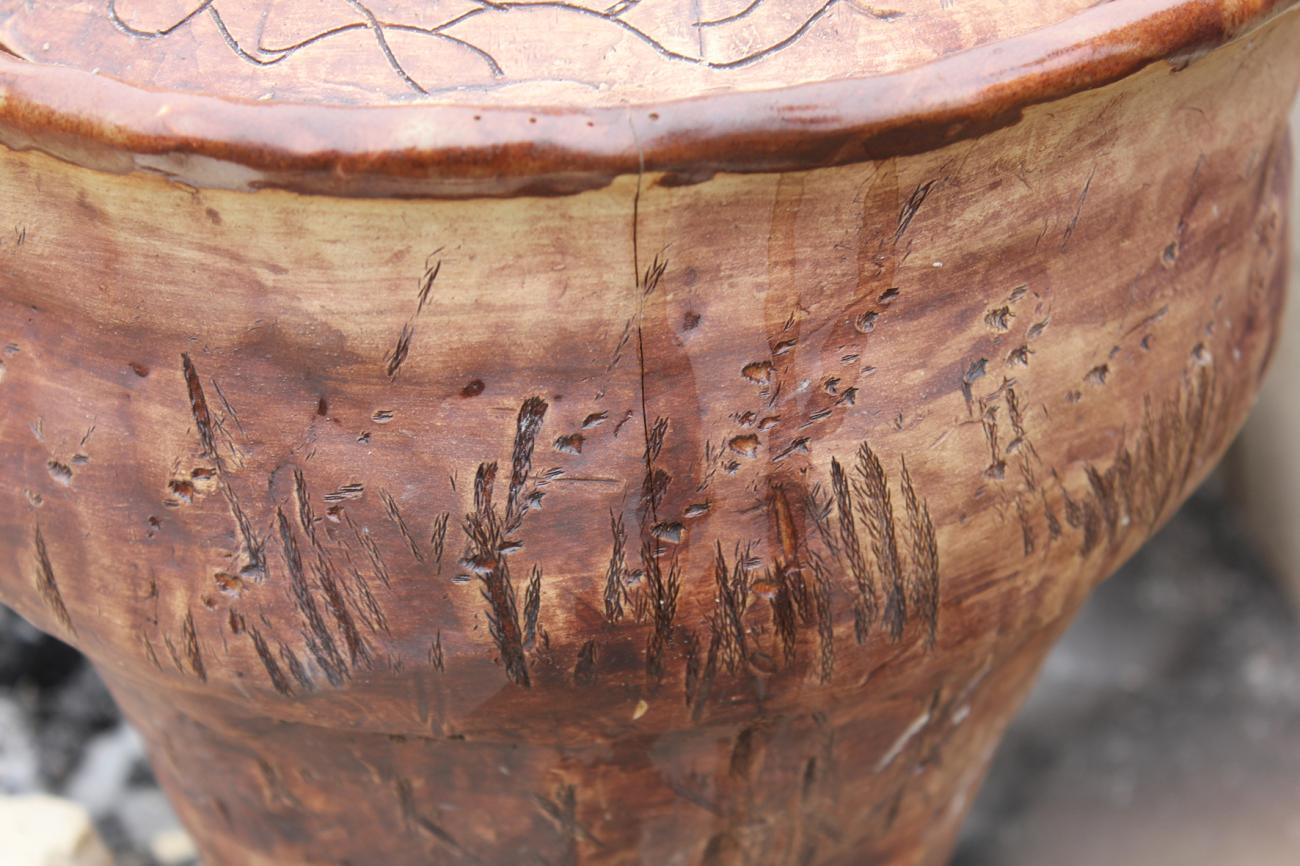 The food replication project had several results. The first was the demonstration of medieval food culture to the participants at the event, and how the foods of medieval Europe were similar to and different from modern cuisine. Many students remarked on the flavors as good but different from what they were used to, and the golden bread pudding was particularly popular. A second result was the demonstration of the process of cooking over a wood fire using ceramic vessels, a practice common throughout the world and in the past, but rare in modern American society. A third result was the technical observation of what happens to ceramic vessels used for cooking on a fire, specifically for the ceramic students who produced the vessels. During cooking, cracks developed in the vessel used to heat the broth (See Figure 7). The pots were fired to stoneware temperatures to minimize absorption of food residues during cooking. However, stoneware is not effective at limiting cracks caused by thermal stress due to the vitrified body. The ceramics students learned that this type of cracking is less likely in earthenware due to porosity of the ceramic body. The reason for this is that if thermal stress develops due to uneven heating, the cracks will stop propagating when they encounter a void in the ceramic vessel fabric as is typical in an earthenware body (Rice, 1987, pp.367-368). The crack in the vitrified stoneware, once it began, propagated from the lip to the shoulder. The over-riding result was that the replication allowed the students and other participants to explore and appreciate the role food played in medieval culture through both observation and participation in an event which crossed disciplinary boundaries for a more holistic understanding of medieval life.