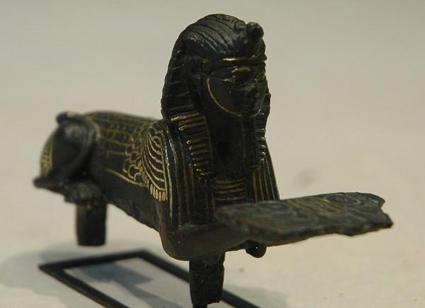 The second is the Egyptian Siamun sphinx with gold inlays dating from the Early Iron Age (978-959 BC), which is carrying a table of offerings and bears an inscription for King Siamun (See Fig. 11).