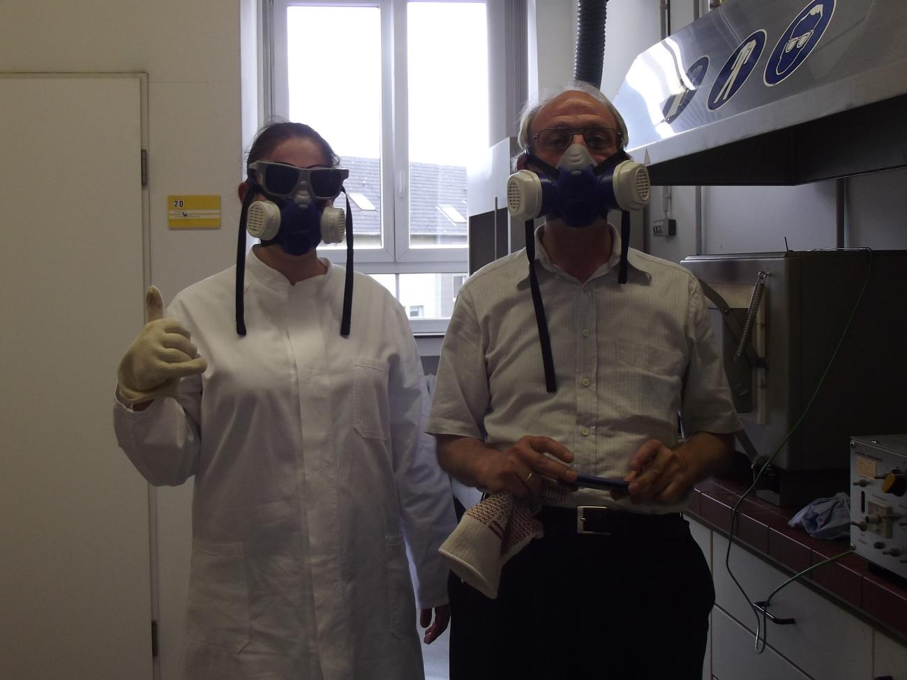 Protective clothing (lab coat, closed shoes), gloves, respirators/breathing masks and a welding helmet (with darkened glass) were used to protect against toxic fumes, heat and brightness during casting (See Fig. 16).