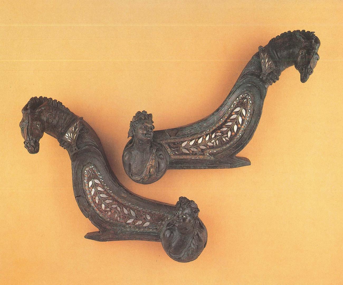 Around 1500 BC dark patinated copper alloys are used as inlays in Mycenean daggers (See Fig. 3) and silver tableware from Cyprus (See Fig. 4) and Greece (Xenaki-Sakellariou and Chatziliou, 1989).