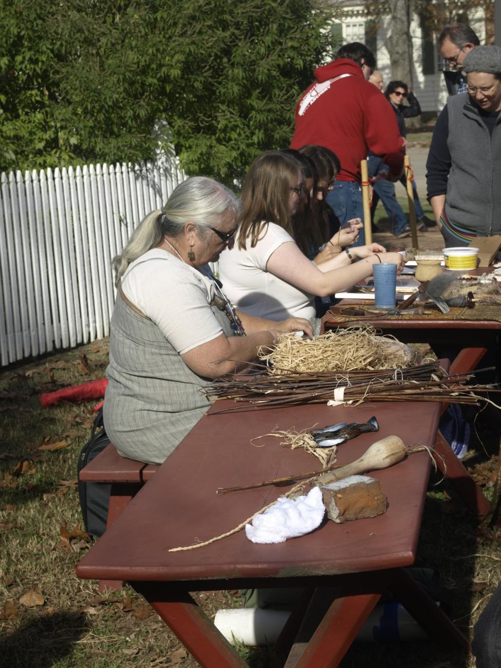 The second day of the REARC conference provided an opportunity for attendees to experience the theory behind experimental archaeology applied in practice. This part of the conference was held within the living history museum, Colonial Williamsburg, where conference attendees could work with demonstrators who showed various crafts from prehistory and history. Again a broad range of research interests were covered through demonstrations of hide processing, textiles and cordage, bronze casting, ancient games, flint knapping and an atlatl competition. The demonstrations highlighted the importance of experimental archaeology in understanding the past, especially for students who could participate in the demonstrations. The activities also exhibited the opportunities experimental archaeology provides to spark public interest in the field. Many visitors to Colonial Williamsburg were interested in the demonstrations and engaged with the demonstrators and students.