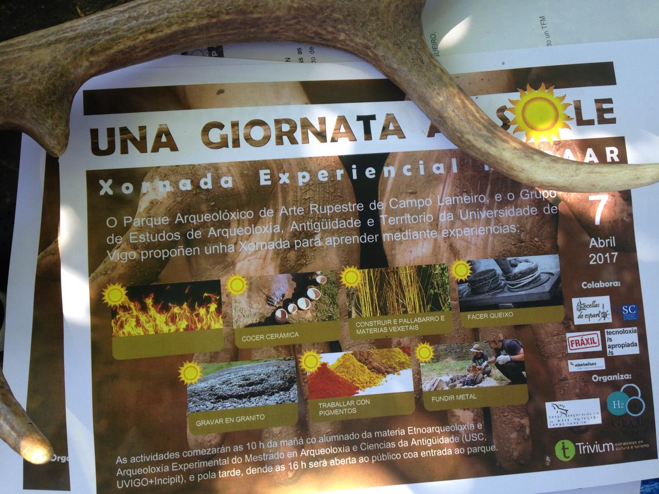 In the academic year 2015-16, the activities were undertaken through the GEAAT, in collaboration with the Campo Lameiro PAAR (See Figure 9), and through the Museum of Traditional Knives in Pardiñas and the Taramundi Town Council (See Figure 10). These were organised as workshops open to the public (first) and as a course (second), with great success as regards attendance. Illustrating the potential of this type of events. Finally, in the academic year 2016-17, the activities were undertaken again through the GEAAT, in collaboration with the Campo Lameiro PAAR, as an open workshop day entitled “Una giornatta al sole” (See Figure 11).