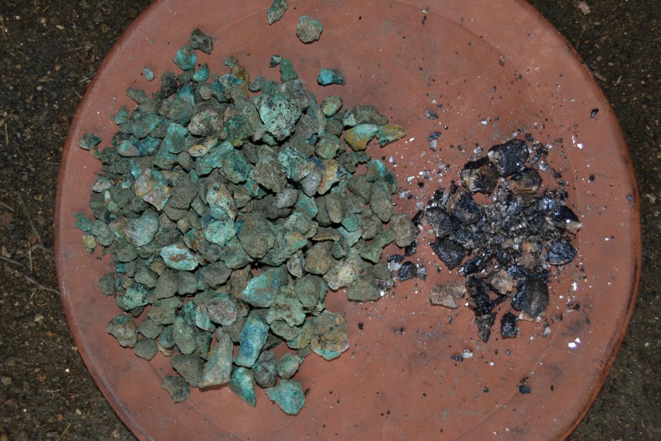 With regard to the experiments relating to the reduction of copper-based minerals, at a theoretical level, it has been proposed that there are three possible ways of manufacturing bronze, and that all of them were used in the Iberian Peninsula between Prehistory and Protohistory. The first of these, known as co-reduction, consists of obtaining bronze from a mixture of copper minerals and tin minerals, which are smelted (reduced) together in a metallurgical structure. From this kind of process, metallic prills of various compositions were obtained which had afterwards to be melted together to manufacture bronze with a specific tin content. The second, known as cementation, consists of obtaining the bronze alloy through the reduction of tin minerals directly on metallic copper. The last of the possible formulas for obtaining bronze is to perform the reduction of copper and the reduction of tin minerals separately, and afterwards melt the two metals together to obtain an alloy. The activities we developed have explored these three possibilities experimentally with positive results, allowing us to delve deeper into extractive metallurgy from an empirical perspective (Figueiredo et al., 2016; Lackinger et al., 2013; Lackinger, 2015).