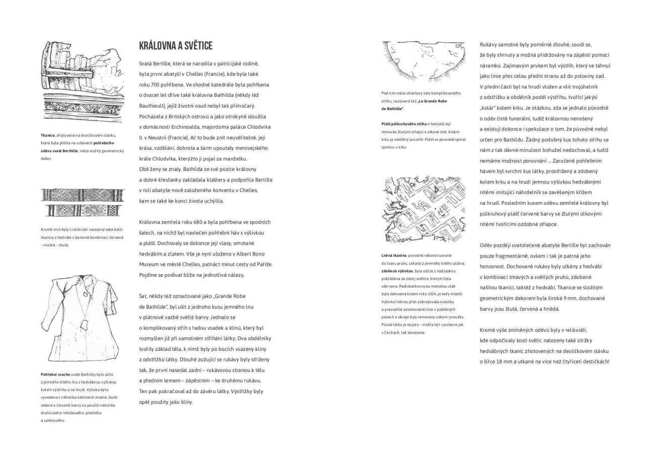 The publication is divided into eight chapters, which present clothing in single periods from the Stone Age through to the Early Middle Ages; the last chapter is dedicated to footwear. The authors have understandably focused mostly on summarising the current knowledge on textile manufacturing, preserved textiles and known evidence of original parts of clothing. They also present a very brief and easily understandable overview of each period in every chapter, so that the readers can familiarise themselves with the basic characteristics of the era. In these introductory passages of each chapter it is easy to recognise the archaeological range of knowledge of the main author, who also collected and made drawings of the most important finds connected with the clothing and body ornaments.