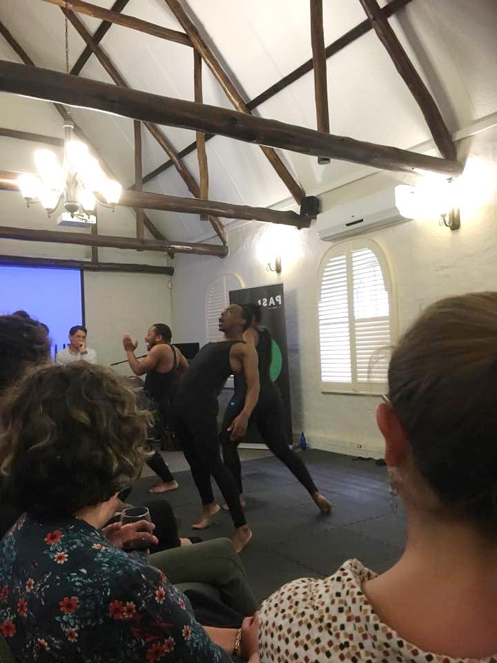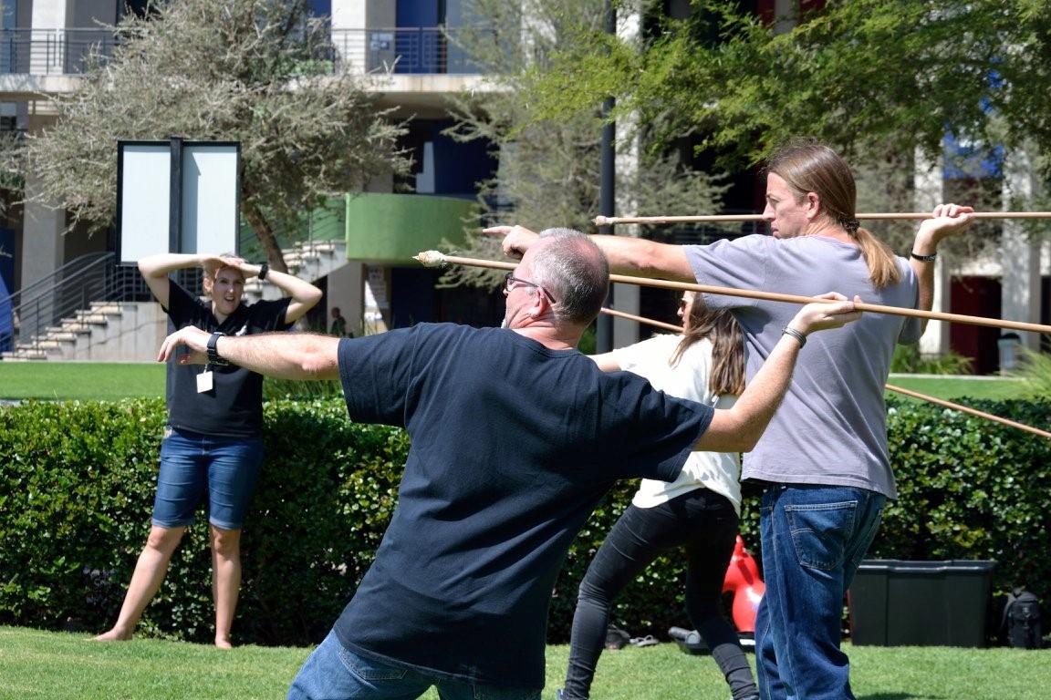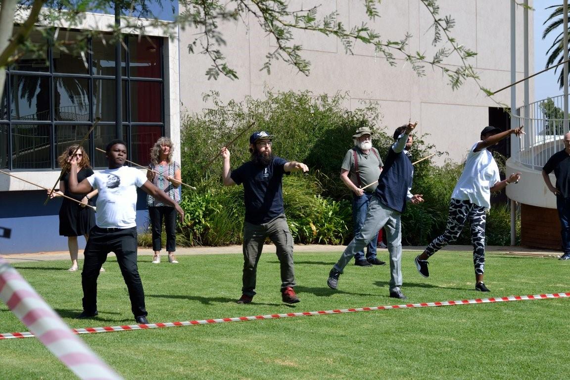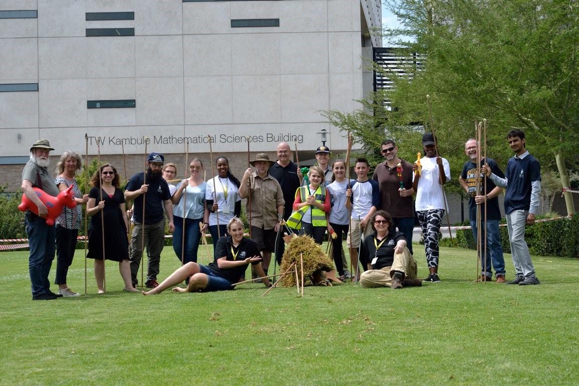 A day of practical experimental workshops was held during the second day of the conference. Hands-on experience was gained in the art of bone knapping, heat-treating silcrete rock (See Figure 2), spear and atlatl throwing, albeit using improvised, homemade weaponry (See Figures 3-5), and in using statistical software as a tool for data management. Workshops were also held to discuss how to improve experimental protocols and referential frameworks when dealing with various issues, such as carnivore and hominin taphonomy. All the participants had a great deal of fun and everyone seemed to learn something new. Delegates were also treated to a live performance of Walking Tall (See Figure 6), a public outreach initiative of the Palaeontological Scientific Trust, designed to teach people about evolution and our common ancestry. The post-conference excursion consisted of a trip to the Sterkfontein Caves in the Cradle of Humankind World Heritage Site. Here, the participants were able to explore the site where some of the most famous fossil hominins in the world have been found. The conference was very well-organised, in a comfortable venue with a wonderful menu. The intimate nature of the conference fostered an atmosphere of collegiality, which will no doubt result in several collaborative endeavours. Great fun was had by all. The bar has truly been set high for future conferences of this nature.