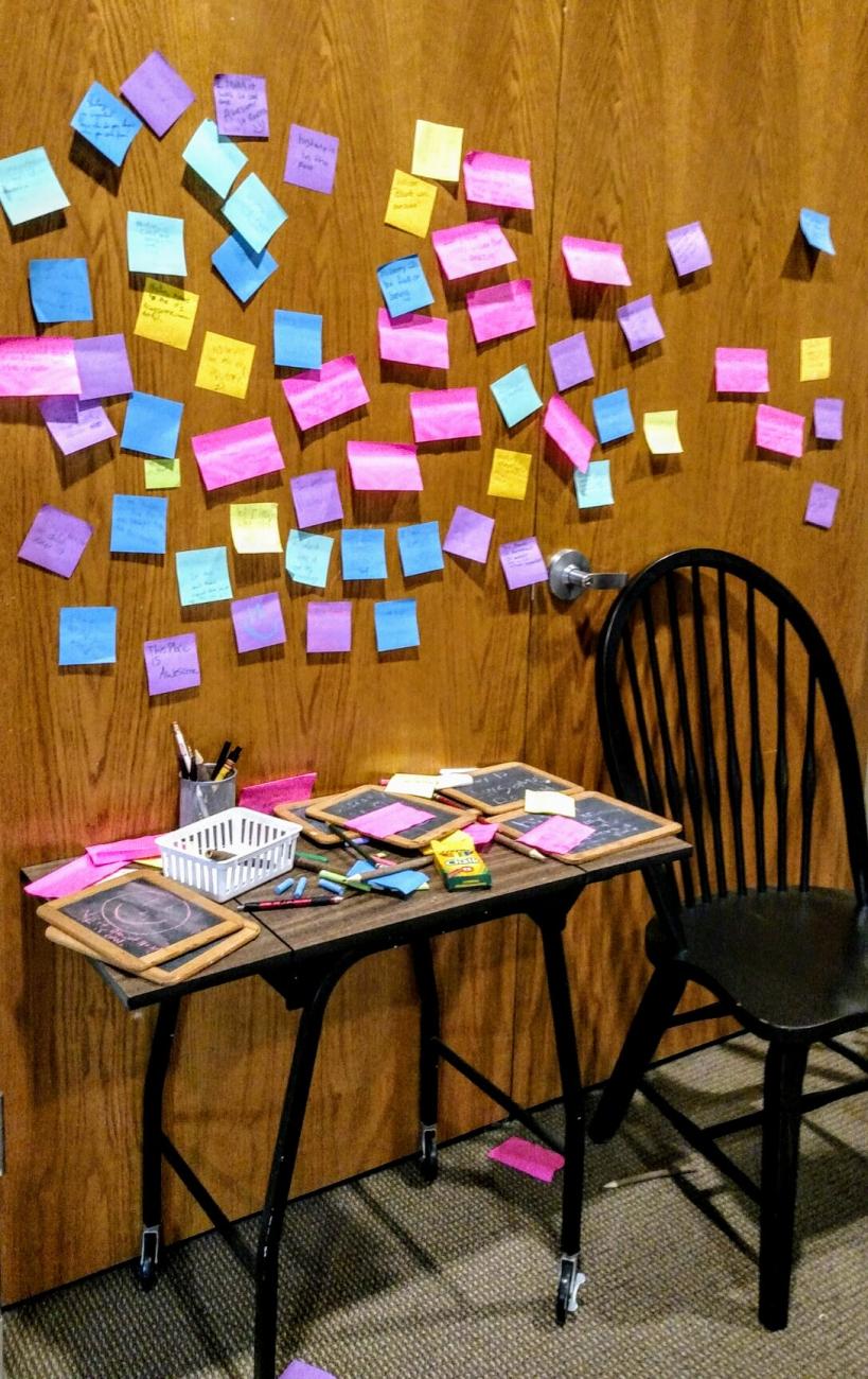 Contributory experiences at museums or with the public are a limited engagement technique that provides an opportunity for the public to provide feedback or examples of their own experiences. A popular example of a contributory exhibit at a museum is a space for visitors to answer a question related to their experience, or the exhibit and include it in a portion of the exhibit. At the Blount Mansion historic house museum in Knoxville, Tennessee, visitors were asked to reflect on their own education in comparison to the education of people on the United States Frontier in the eighteenth century. They could submit their contribution either on a Post-it note, which became a part of the exhibit and later an accessioned collection item, or as a temporary contribution on a chalk slate similar to those used by students in the eighteenth century.