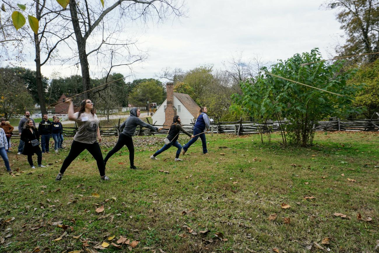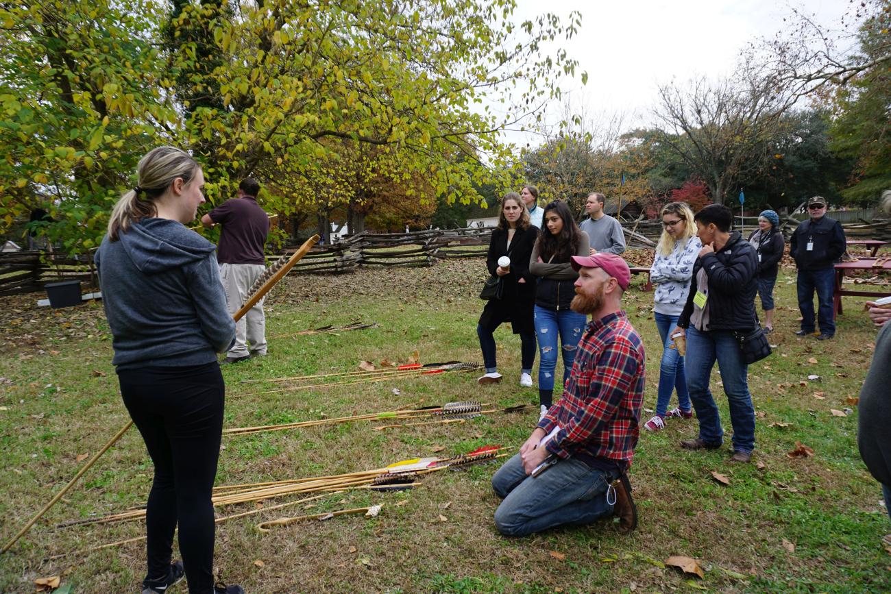 One of the pioneers of living history has also hosted the REARC conference for the past few years, Colonial Williamsburg in Virginia, USA. The reconstructed eighteenth century village began as one of the most successful âedutainmentâ destinations for American history. Visitors can explore historic houses, talk with brick makers about the process of forming and firing bricks, take a carriage ride with an authentically dressed guide, participate in the daily mustering of the troops, and more. Students who attend the REARC conference experience all of this, but then also participate in the experiments with both Colonial Williamsburg staff and REARC participants and professors. At REARC, students have built fires, thrown darts with atlatls, skinned and tanned hides, and even helped in metal smelting. This had a great impact on the students and the research questions of professors, but, as a public historian, the author was most impressed with the inclusion of the general public who visited Colonial Williamsburg during the conference. In 2017, the atlatl dart throwing seemed to be the most popular amongst both general visitors and REARC students. This applied history in the public sphere educates everyone involved in lifestyles of the past and offers public historians and experimental archaeologists the opportunity to gather more data and engage the public.