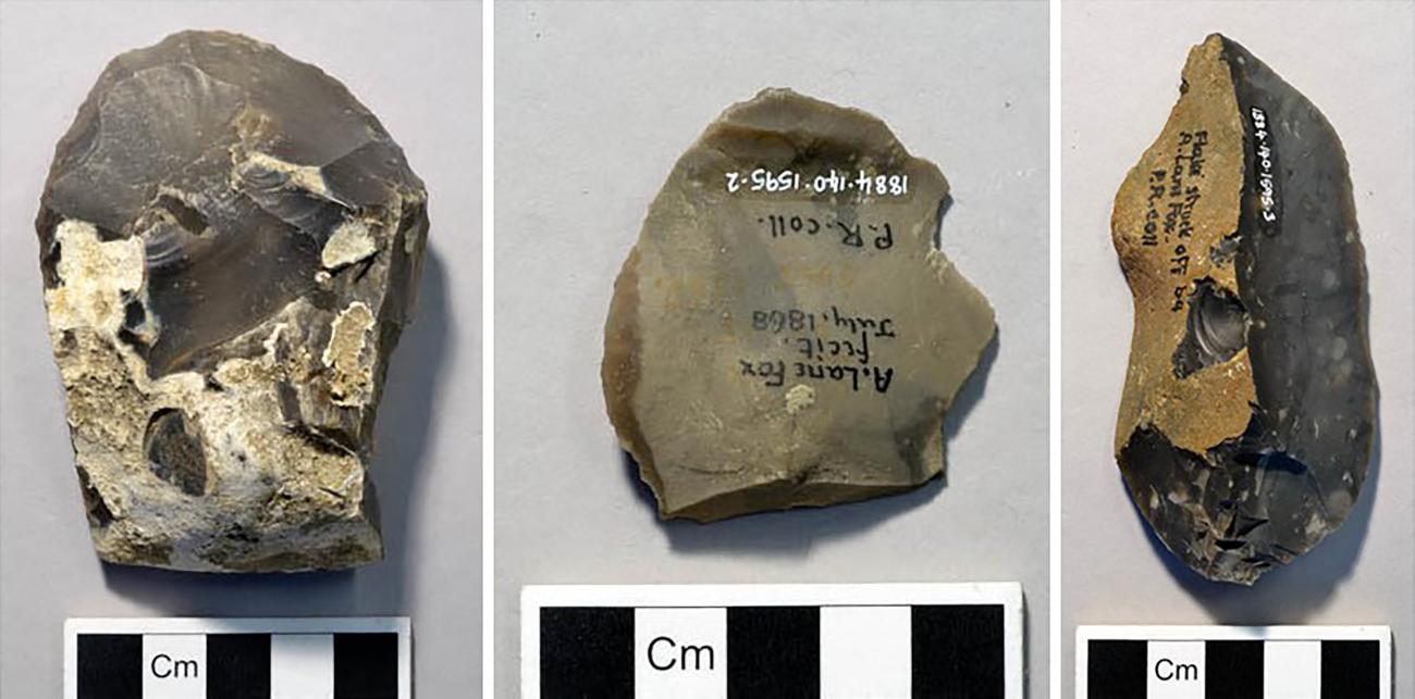 Evans also taught others. Augustus Lane Fox Pitt-Rivers wrote that Sir John Evans was respected as an expert flintknapper and had taught him how to flint knap (Johnson, 1978; Roberts and Barton, 2008). Pitt-Rivers heralded the âapplication of the knowledge thus obtained by modern anthropologists, and by Mr. Evans in particular, to the determination, by means of experiment, of those forms and modes of fracture by which we are enabled to recognize at a glance and with certainty, the smallest chip of flint flaked by the hand of man, from those which, split by natural causes, cover the surface of the groundâ (Lane Fox [Pitt-Rivers], 1875, p.358). Applying this to the search for Palaeolithic humans, Pitt-Rivers (1875, p.359) wrote that, because it was now possible to identify flakes rather than just looking for formal tools, âwe know where to look for Palaeolithic man in the drift gravels, and to determine his place in sequence by the deposits which overlay themâ. Pitt-Rivers attempted to make stone tools of his own, three of which are in the collections of the Pitt Rivers Museum at Oxford (Catalogue #1884.140.1595.1 through 1884.140.1595.3), and also conducted experimental archaeology to understand the construction of ditches and banks at the Neolithic site of Cissbury Ring in England (Lane Fox [Pitt-Rivers], 1877; Bowden, 1991; Stevenson, 2012).