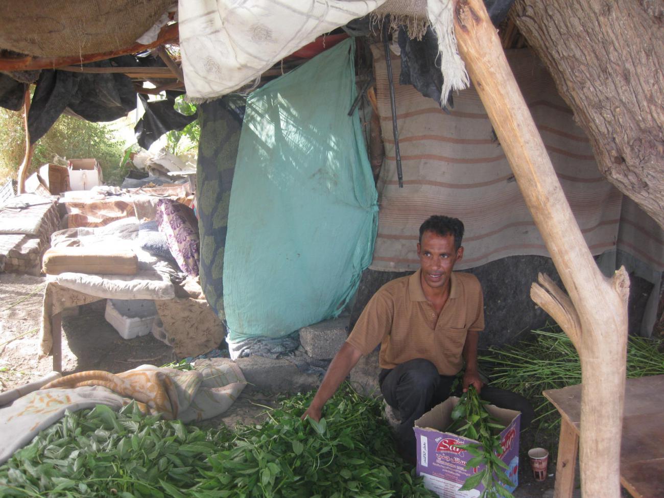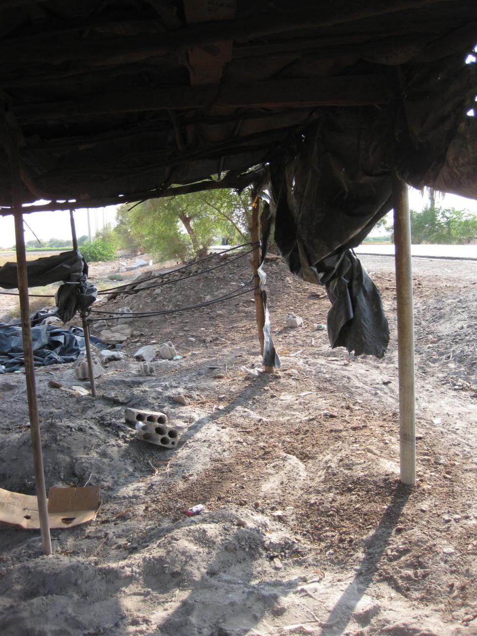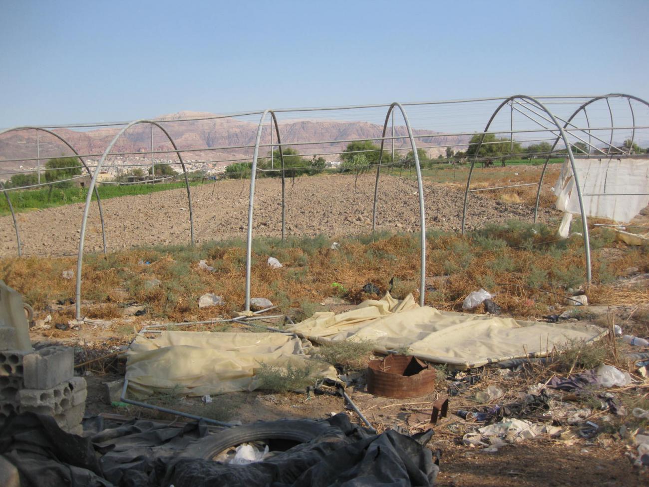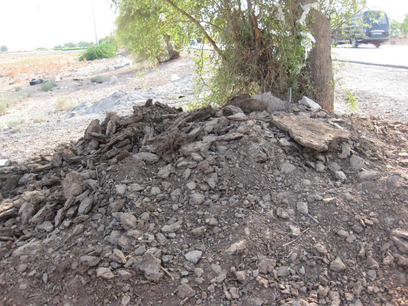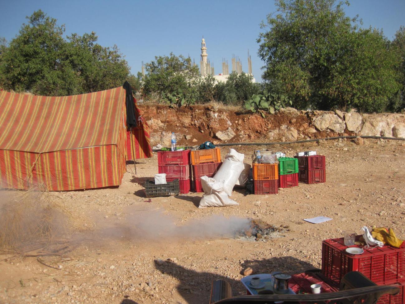 Behind Khrawlaâs roadside tents there is a field, which she owns and provides her with primary resources. She uses this field to grow okra, once the okra is harvested and sold, she gathers clay from the field, mixes it with water and straw to rebuild or repair her ovens. In winter, she fertilizes the field with sheep dung ash from the ovens.