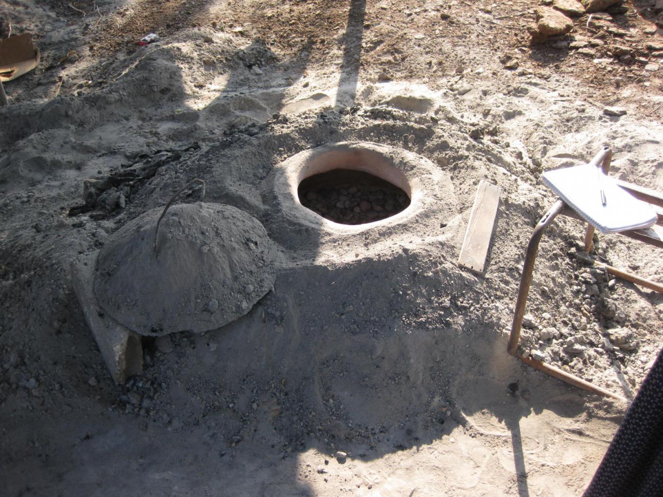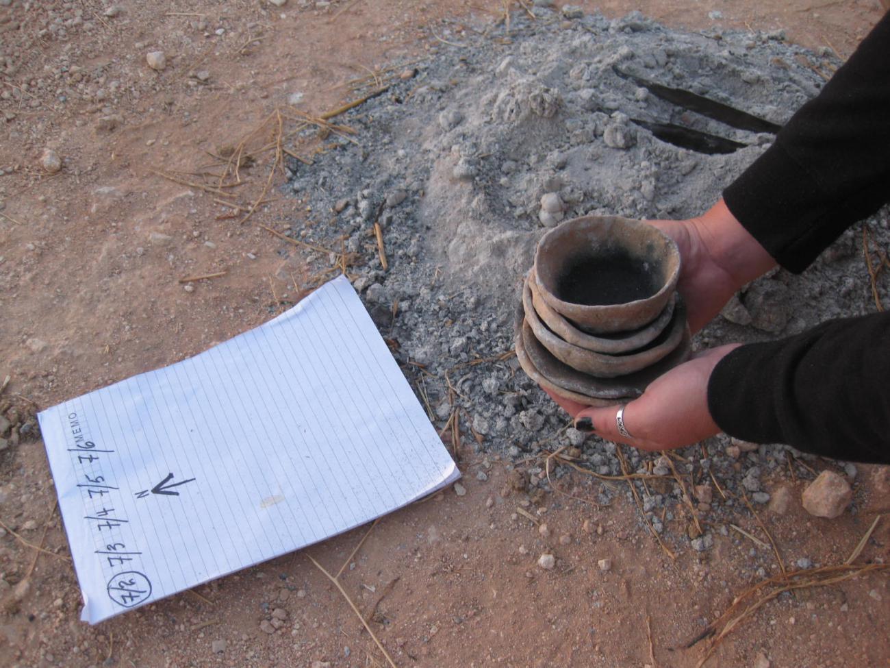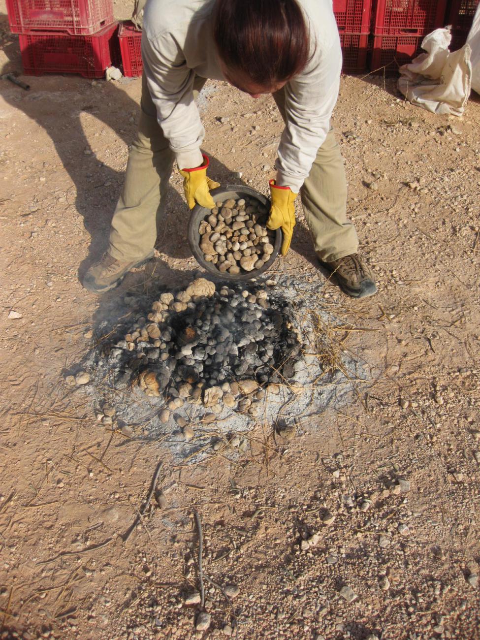 As Fire Master, Katherine Higgins, M.A. candidate in Archaeology, Florida Atlantic University, perfected the chaßne opératoire for a dome-shaped blanket of hot camel dung, which produced sufficient heat to bring clay vessels to functional hardness.