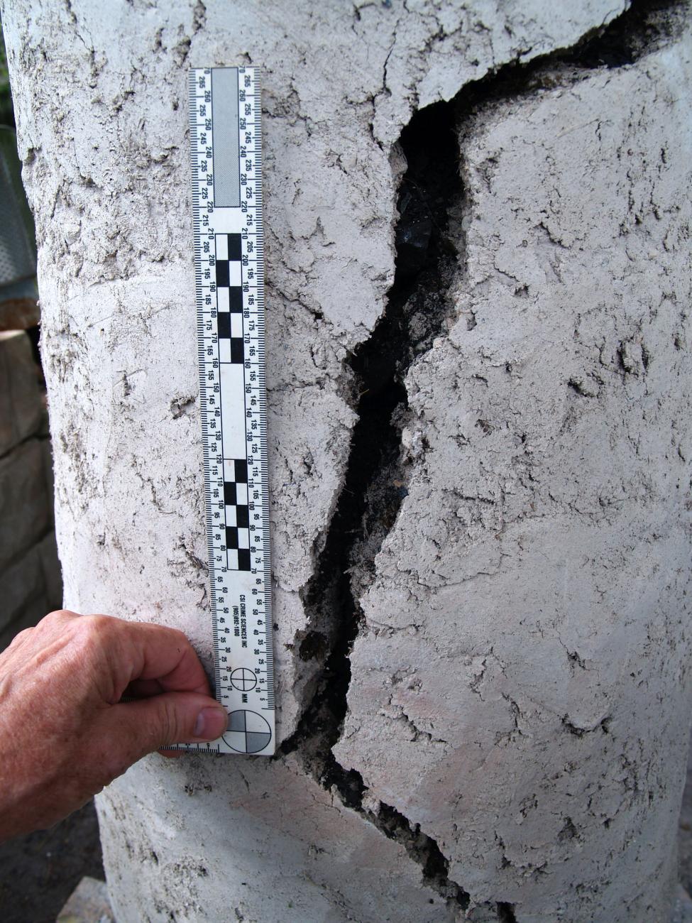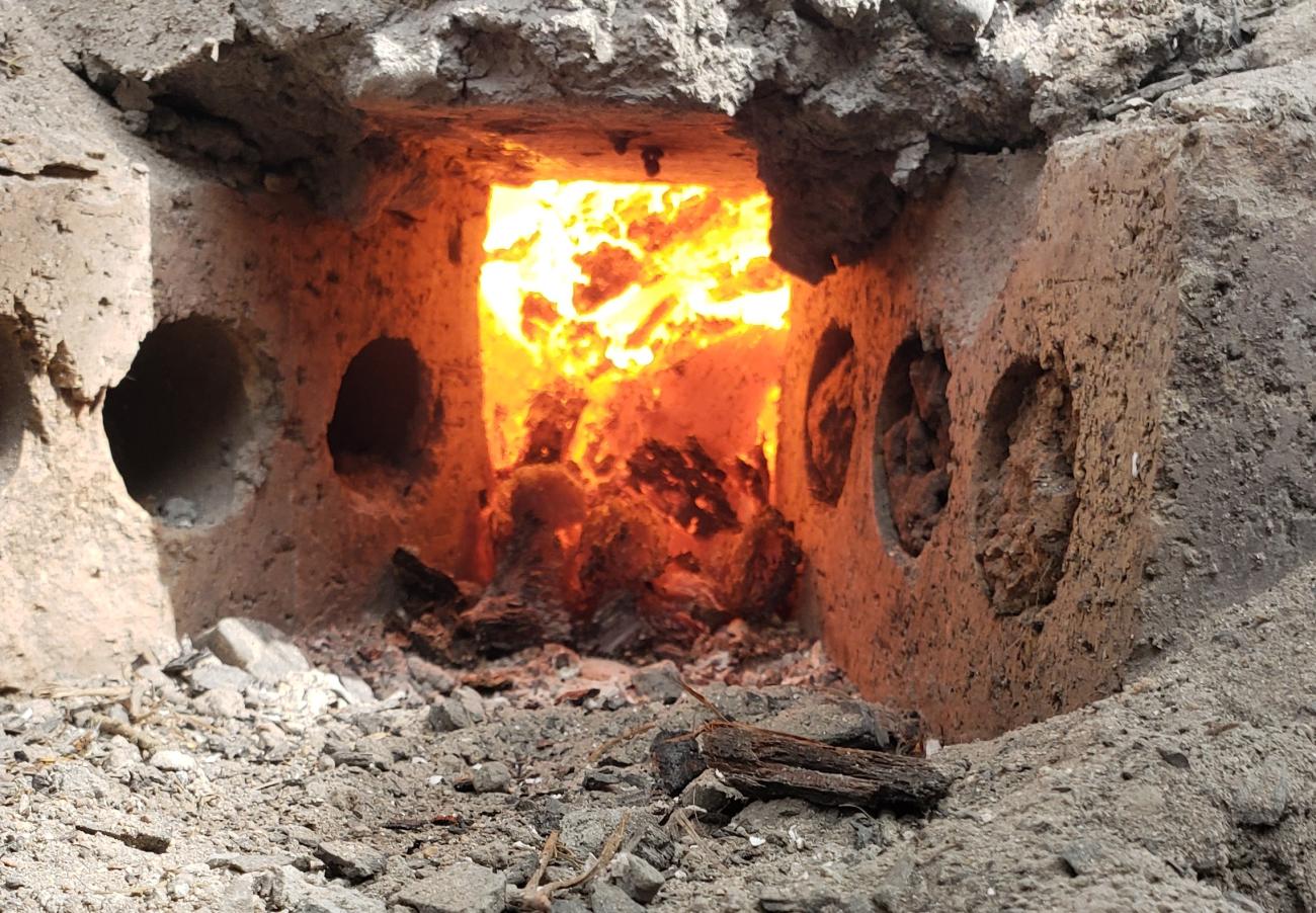 The widest part of the cracking was about 2 cm and extended fully through to the inside of the furnace. The crack was patched on Aug 25, allowing the newly applied clay time to dry and shrink before the planned firing (See Figure 5).