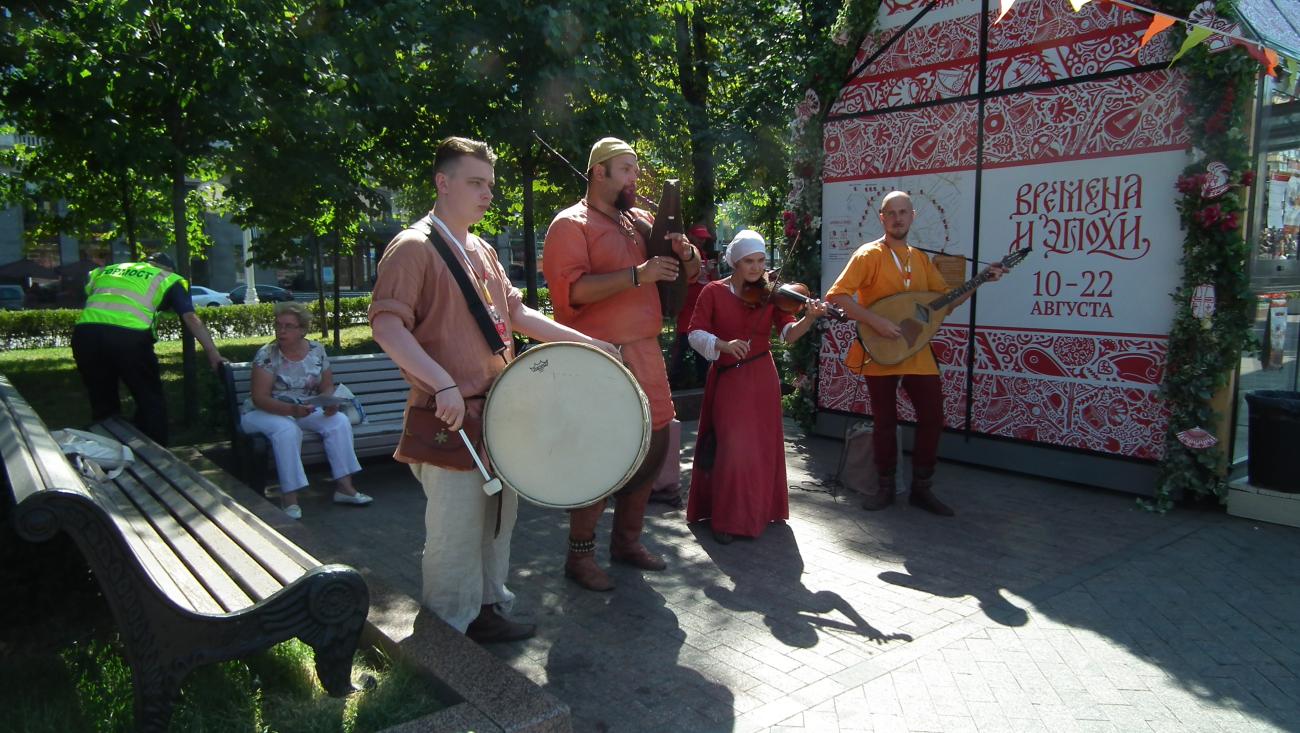 In August 2018, members of EXARC participated in Moscow’s Times and Epochs Festival for the third year. The annual festival is held on park boulevards that surround the inner city, providing an ideal green space for reenactors to recreate various periods of Russia’s history. The main sites were located in Tverskaya Square, Nikitsky, Passion and Tver Boulevards, on Kamergersky Lane and Profsoyuznaya Street. The festival was spread over 10 kilometres with over 30 locations, hosting over 200 reenactors coming from various European and Asiatic countries. The periods recreated ranged from the Palaeolithic to the 20th century. There were impressive army encampments from the Napoleonic Wars, a Viking village, and medieval Muscovites. The festival also hosts a contest in which the presenters of a winning proposal receives one million roubles to implement their historical project.