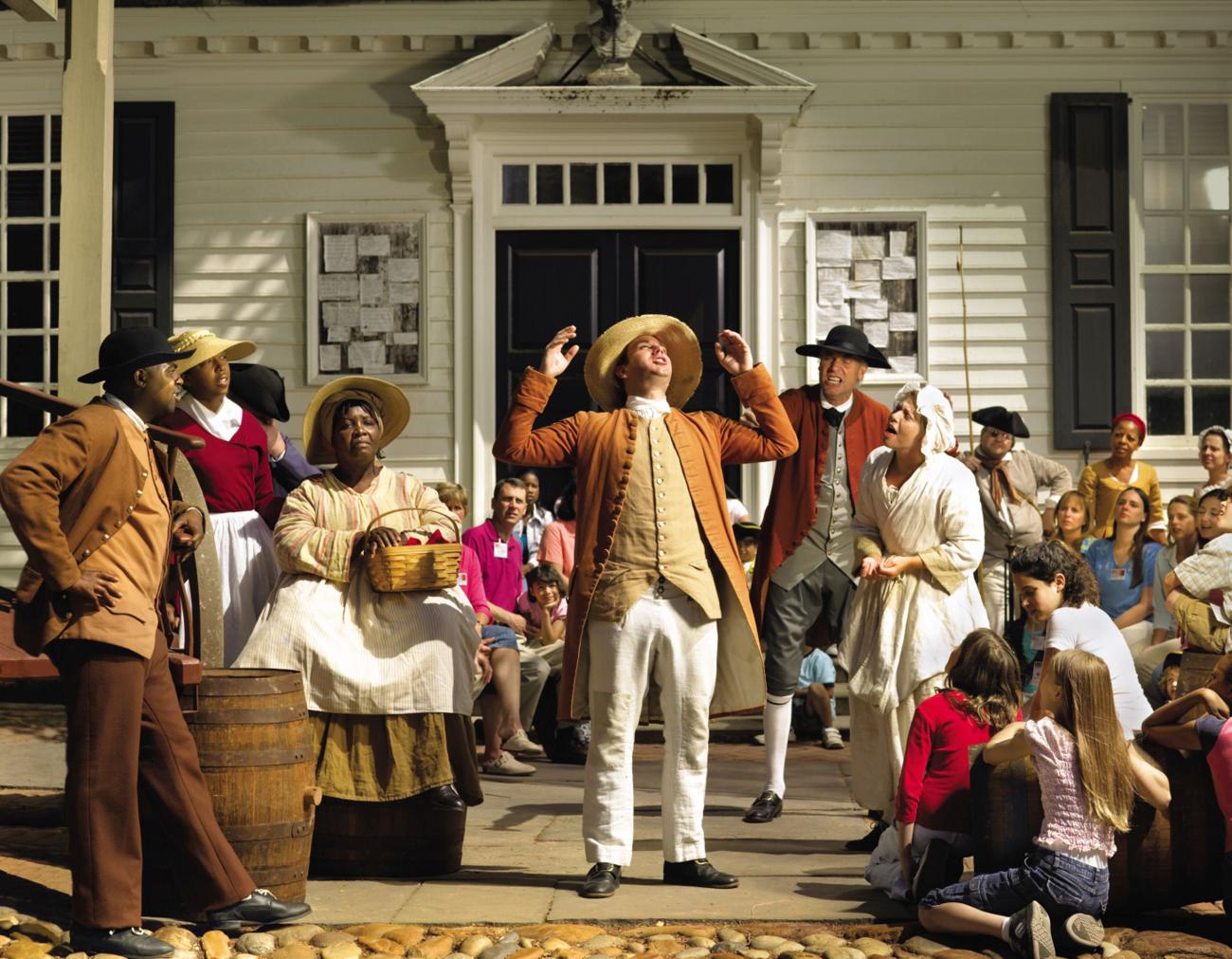 Such sensitive and traumatic issues like slavery brought to light the underlying dissatisfaction with race-relations in modern America, and still align with much of current political debate surrounding American values of equality and freedom. Currently, we are still at the forefront of discussing moral dilemmas and their modern social implications in a museum context. For instance, Colonial Williamsburg has recently developed a website along with UNESCO to provide an opportunity to connect more than fifty museums and sites that remember “transatlantic slavery, slave trading, and their legacies” (Slavery and Remembrance, 2018). Following on from Publick Times, a more recent and innovative Colonial Williamsburg program called Journey to redemption–telling the story of enslaved people provides a neutral forum for visitors to debate not only slavery but how it is represented. The production was devised theatre, collaboratively developed to tell stories about the personal lives of enslaved and slave owners, and told from an 18th-century perspective. As it progresses the piece begins to transform, with the actors, now out of character, giving their personal experiences and anecdotes on what it is like to portray the enslaved or slave owners from a modern perspective. This discussion mixes light and heavy themes, culminating in an end of production audience discussion to debate and explore the values portrayed onstage. The program is typified by movement and imagery that uncovers the humanity of the enslaved and develops the interpretation of slavery in an honest way, but throughout puts the viewer in the minds of the participants–both in the past and in the present.