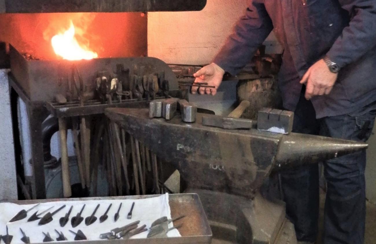 Before forging, we analysed the metallurgy of two Alemannic arrowheads from the 6th century. They were entrusted to us by the Landesmuseum WĂĽrttemberg in Stuttgart. One rhombic shaped artefact had an interesting three-layer (sandwich) structure constructed of different sorts of steel (See Figure 3). The core part consisted of mostly ferritic iron with 180 HV1. On the outside there were two slightly harder layers of ferritic/perlitic iron with 190 HV1. A modern structural constitution like this made the arrowhead less susceptible to brittle fracture when hitting massive targets. The softer central layer was able to stop crack expansion while the harder outer layers stabilized the flat blade. One can assume that this elaborate arrowhead was produced with high technical expertise. Because of their similar material and hardness, we expected our tips to show an authentic performance in the tests (See Figure 4).
