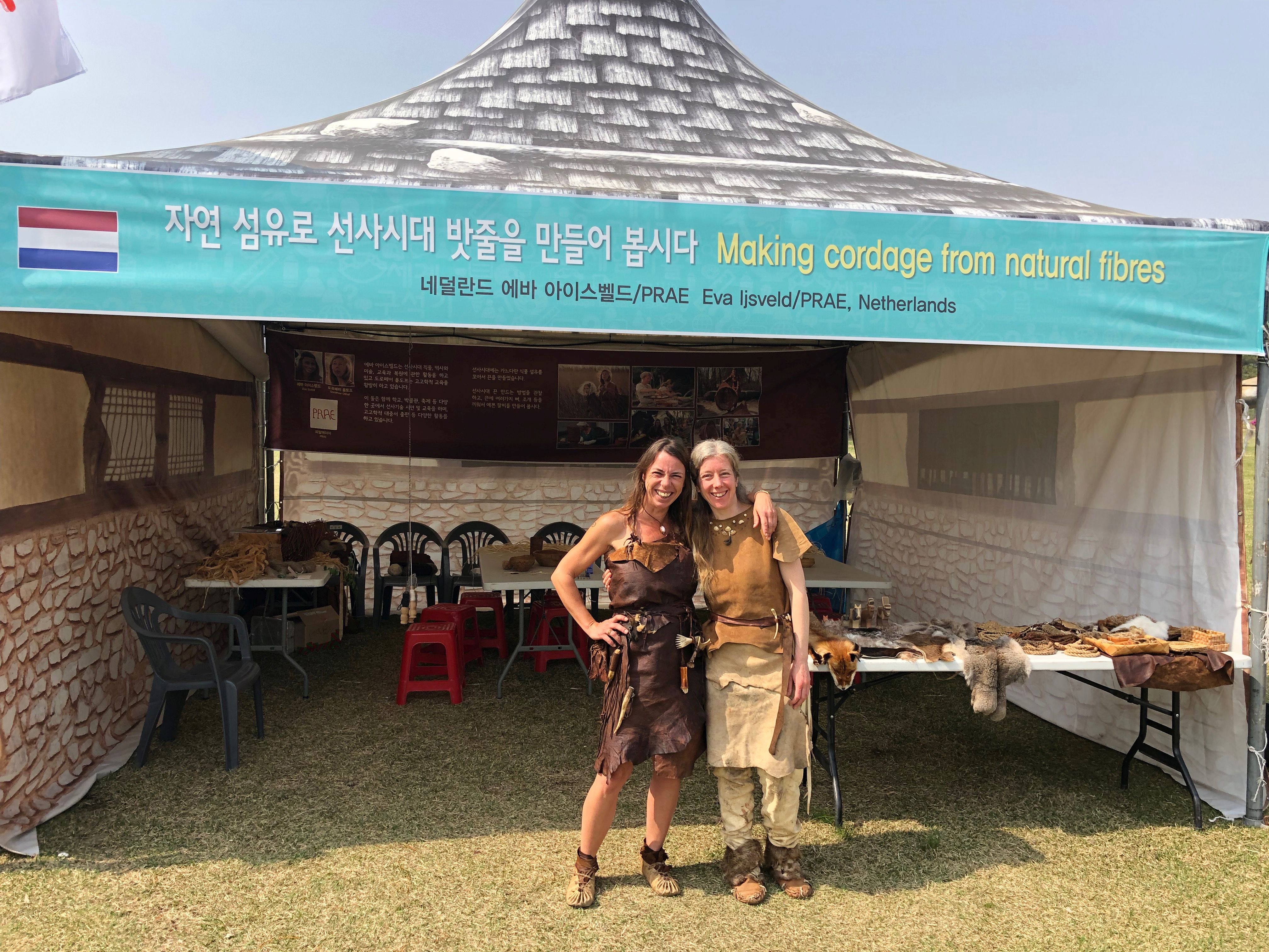 On the first day the international participants of the festival presented themselves and their projects during a small conference in the museum. There were lectures on several different topics, ranging from the responsibilities of re-enactors to Japanese jade-finds and mysterious loom weights from Portugal. We presented the subject we were going to demonstrate during the festival: the use of plant fibres for cordage, netting and plaiting and the reconstruction of a Stone Age fish trap. The participants came from all over the world: Chili, Portugal, Spain, France, Germany, Japan, Korea, Tanzania and the Netherlands. It was very interesting and inspiring to see how everyone works with Stone Age themes and the public in all these different places.