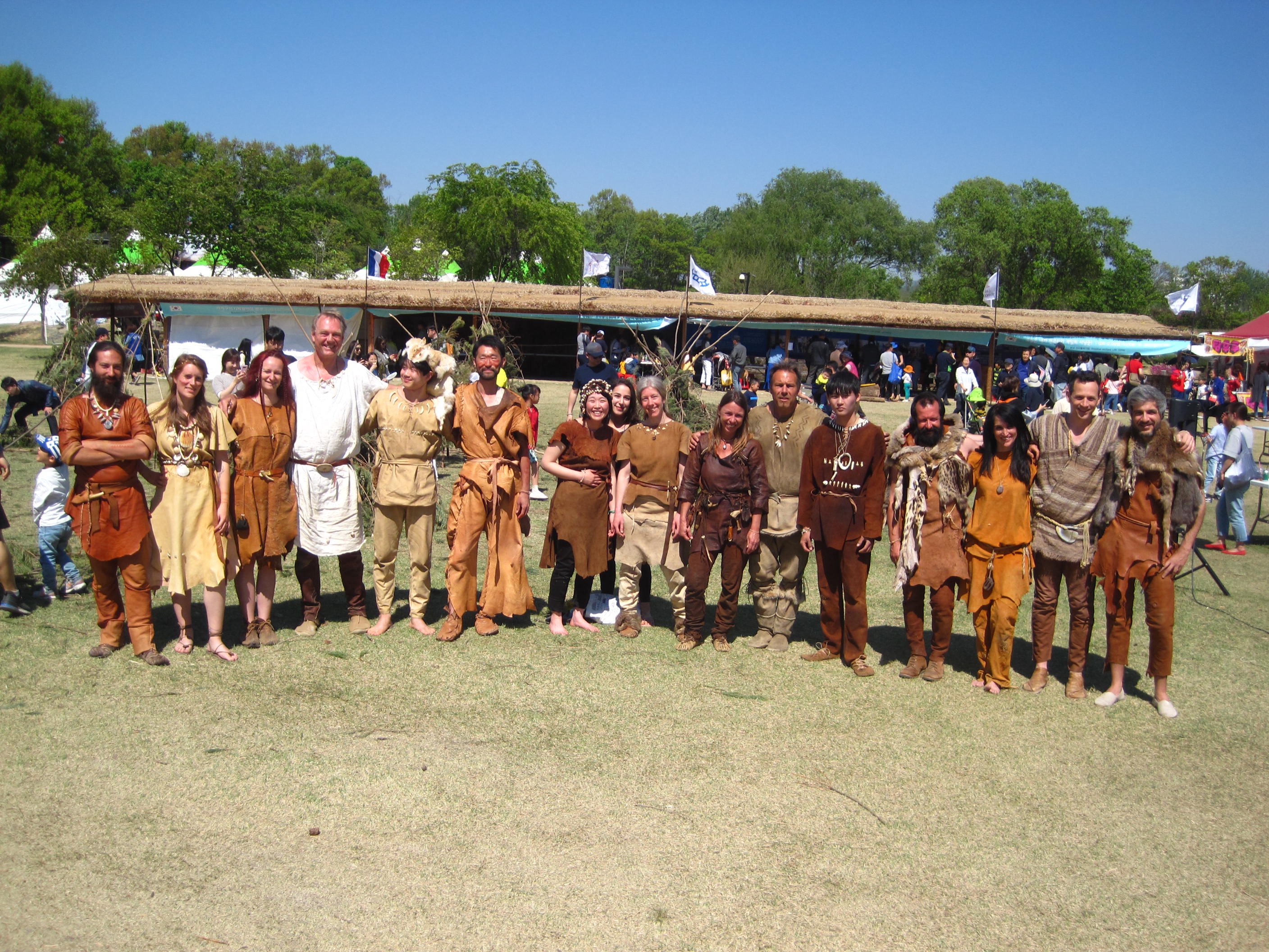 The festival proved to be a huge and diverse event with many thousands of visitors. There was, of course, our field with Stone Age activities, like wood working with stone axes, making beads from cherry stones and slate, decorating cave walls with Palaeolithic art, making leather pouches and bracelets, archery, making cordage from plant fibres, flint knapping, Masai jewellery and much more. Besides the hands-on activities involving the visitors, all international participants were expected to do a show or demonstration for the public of their particular skill or topic. We did a prehistoric fashion show with volunteers from the public who we dressed up in (European) Prehistoric costumes. This way we made a timeline in fashion from Stone Age hunters and gatherers up to Iron Age farmers.