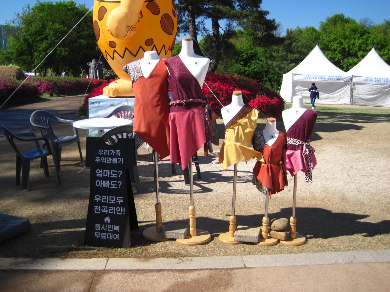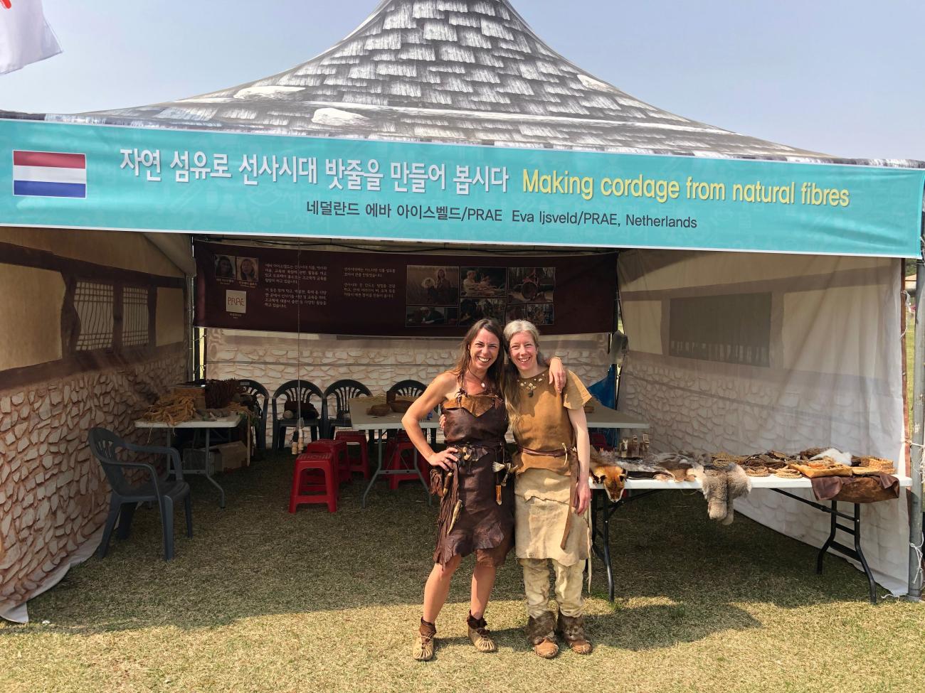 In The Netherlands (and probably the rest of Europe) this would focus solely on the Stone Age: prehistoric people doing Stone Age activities with the public. However, in Korea they do things differently. Apart from our ‘authentic’ field there were many more activities: a market with Korean food, art and crafts, children’s games, a small stage with a karaoke contest, enormous fire pits where visitors could barbecue, lots of food stalls, the big stage with (very loud) performances ranging from traditional Korean music to street dance competitions and everywhere there were families picnicking, relaxing and having a good time. Many of them were dressed up in funny caveman-outfits that were to be had at the entrance of the festival. Even the mayor and the local politicians wore these costumes during their visits to the festival! That’s not something you could see in Europe (at least, we have never seen it).