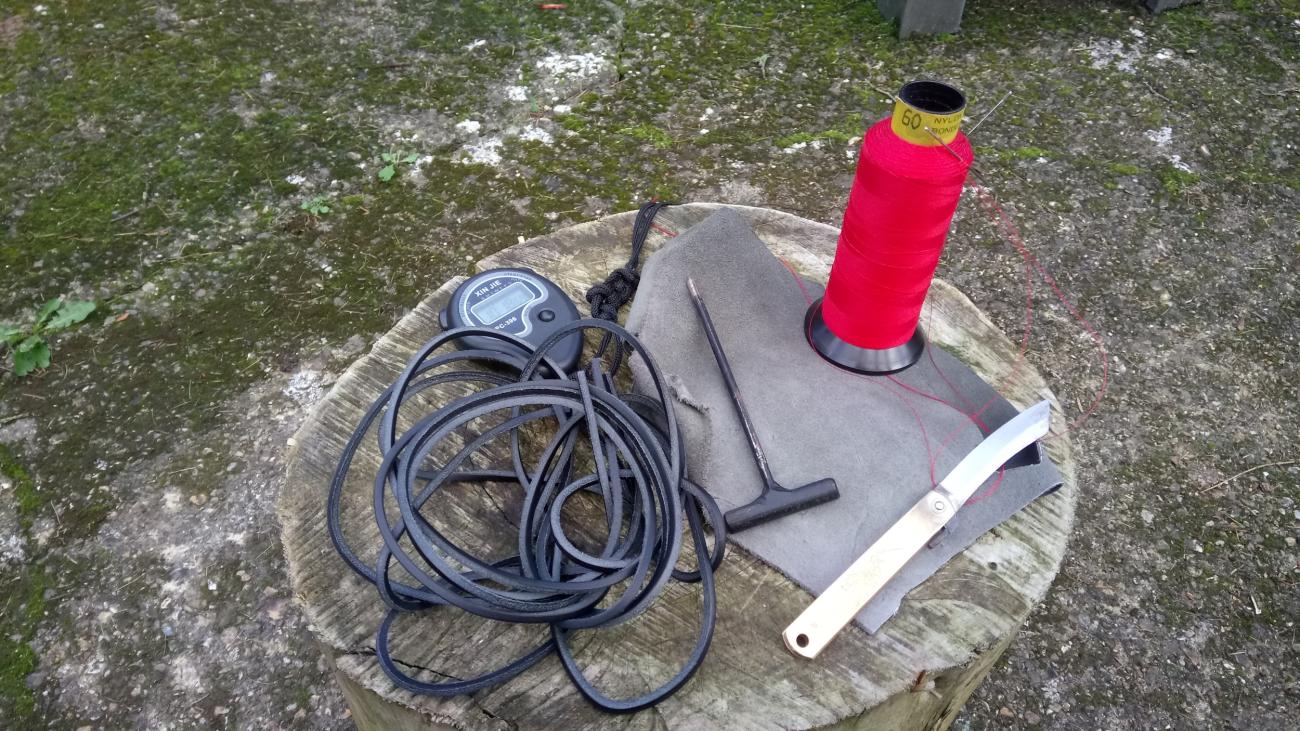 The first experiment was to create the sling using cow leather, which would have been a common material used in Iron Age Britain (Cunliffe, 1993, p.190), I also wanted to see how practical the sling was by gauging how long it took to make and then comparing that to how much practice it took to get a basic working method. Once this was achieved, I would then further test the slings capabilities (See Figure 1).