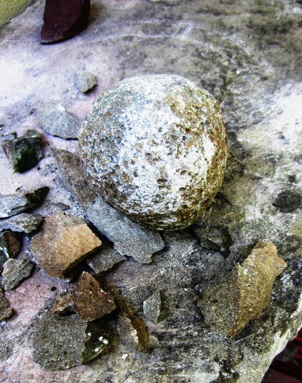 Once the bas-relief parts were put on display, I continued to remove the surface by alternating scraping with jasper and hammering with the pebble. Hammering the sandstone divided it into sand and quartz, and then the scraping became easier to make a new smooth surface. This was hammered again and then polished many times. Many times, I had to wash away the sand from the stone. I used a round stone weighing 1400 grams and 10 cm in diameter as a hammer. Without a handle I could control the work better. To smooth the sides, it was not possible to hammer because I hit the sedimentation planes perpendicularly without ever having a smooth surface.