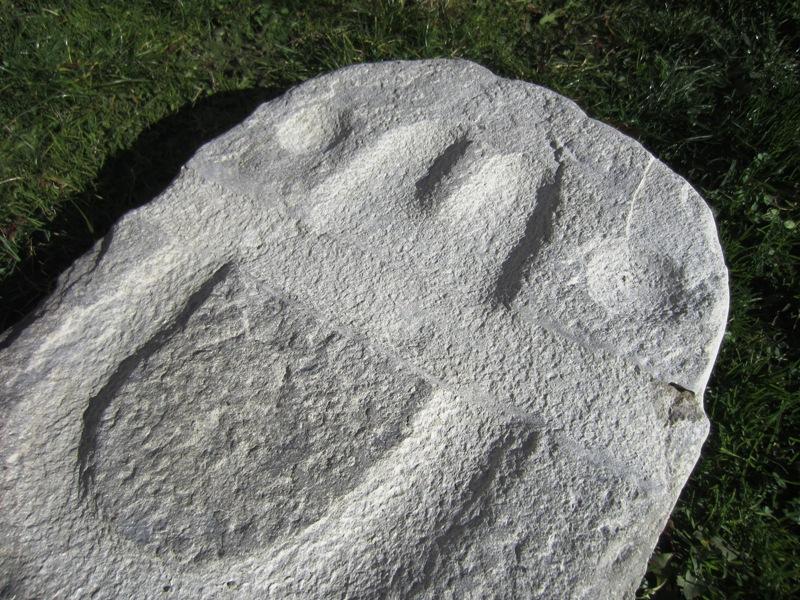 I was inspired by statue number five, which represents a child with no apparent gender, which was positioned between two statues representing adults. In the group (See Figure 5) it is the only one with hands that are joined. My reproduction measures 68 cm in height, 44 cm in width and 9 cm in thickness for a final weight of 40 kg and has the same appearance, weight and size as the statue number five. The bas-relief has a maximum depth of 7 mm. About 10 kg of material has been removed from the initial piece of stone. I have done the drawing several times using steatite, a rock of microcrystalline talc structure, present in the area and used in prehistory to make jewellery (See Figures 6 and 7).