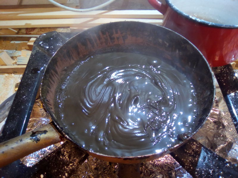 Since the production of pitch using historical methodologies would require time and large amount of raw materials, we based our recipe for the pitch on the three different formulations (different for firmness) reported by Herbert Mayron (1912, pp.200–202), whose contribution establishes the use of bitumen instead of pitch of natural origin, mixed with chalk Colophony and tallow.