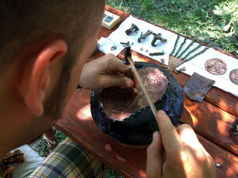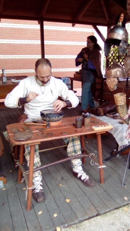The archaeological findings have been observed, pictured and measured; the next stage has been finalised to the creation of the objects and their decoration. All of these objects are currently used during our re-enactment activities; we took the chance to get good advices from craftsmen and blacksmiths who visited us through the time (See Figures 21, 22, 23, 24, 25, 26, 27).