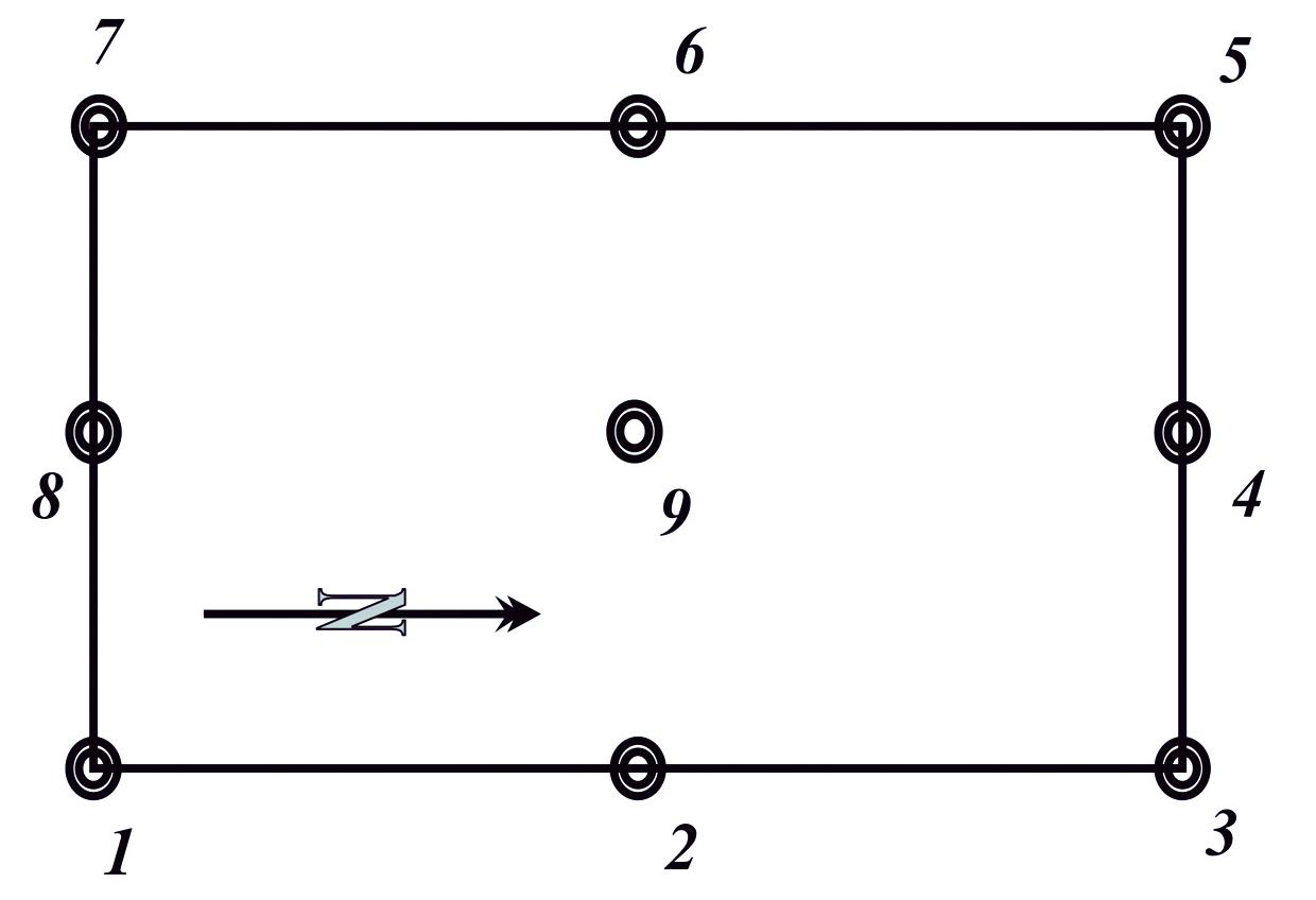During the three hour incineration, between 12.00-15.00 (See Figure 7a-c, 9c-d), the temperatures reached at different points of the house were documented. A portable infrared thermometer was used to measure these differences (OS523-2 OMEGASCOPE, High-Temperature Handheld Infrared Thermometer), offered by the Arheoinvest colleagues (See Figure 8a-b). All values were measured according to the house plan, with nine measuring points set (See Figure 10a). Data was taken on the vertical axis in the three levels of the vertical posts of the dwelling - upper, middle and lower, until the walls collapsed, after which all measurements were taken from the base (See Figure 10b). About 6-8 minutes after the fire started, the reed roof of the house burned completely and collapsed inside. After about 1.5 hours from the beginning of the fire, the clay walls of the dwelling collapsed, from which only the vertical posts of the framing remained standing. Thus, after about 3 hours and 20 minutes after the fire commenced, a ruin remained on the site of the building, consisting of agglomerations of burnt clay, ash, charcoal and pieces of fallen or still smoldering posts (See Figure 7d-g, 9e-g).
