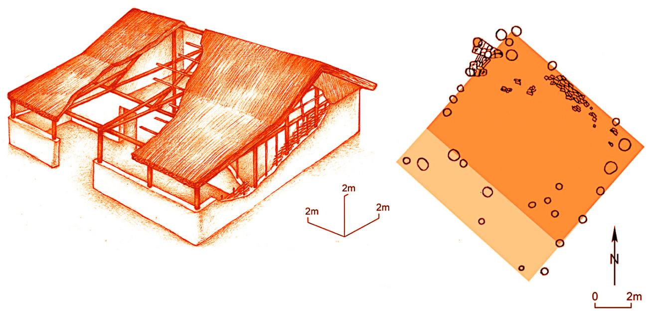 The documentation necessary for the reconstruction of the first dwelling from Saharna-Ţiglău served as the graphic reconstruction for the surface dwelling no. II from Alcedar III. This dwelling which was 9×9 m square, with the entrance to the southwest (See Figure 1).