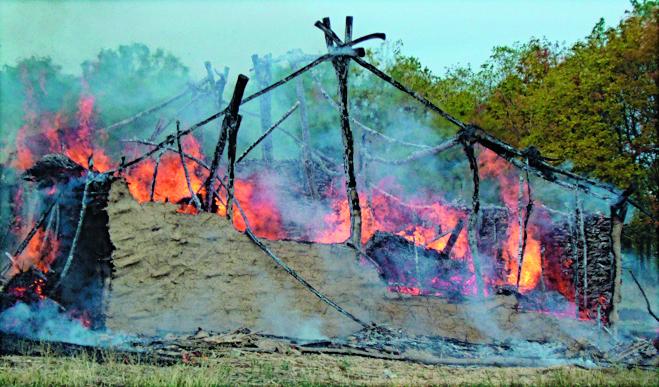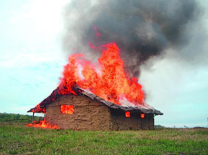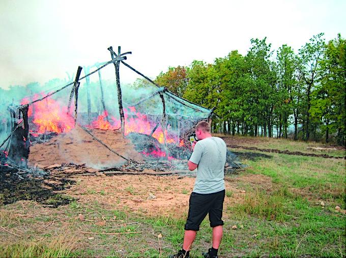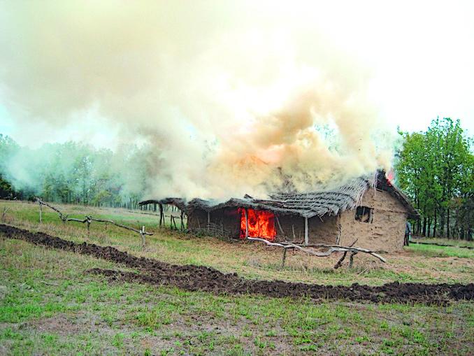 The archaeological experiment was completed with a controlled burning of the dwelling, the documentation of the burning processes and its impact on the archaeological material (See Figure 7a-g, 9c-g).