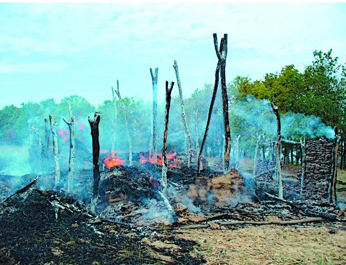 As a result of these stages, completed in April 2008, the wood frame of the dwelling was largely finished. The quantified material effort was approximately 25 m3 of wood and approximately 300 m of rope and the mobilization of about 30 people for six days.