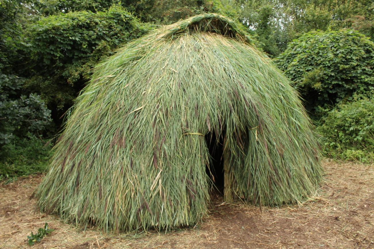 Besides the huts of the Living Experiment, the builders of the first huts at Archeon had gathered information about two more models: two reconstructions from ArchƤologisches Freilichtmuseum Oerlinghausen (DE) and one built by students from the BAI. Both are discussed in an archival document from Archeon, in which they feature as sources of inspiration on how to build the huts at the new theme-park to be (Geerlink, 1990). The basis of the Oerlinghausen reconstructions is a controversial excavation from the early 1930s at Retlager Quellen (Banghard, 2007). These reconstructions are far smaller than the huts at Archeon (2.30 x 1.50 x 1.70 m), yet the branches that would form the arches were in a similar way pushed into the soil. Over time, various materials have been used to cover the skeleton, such as hides, birch bark and common couch (Agropyrum repens).