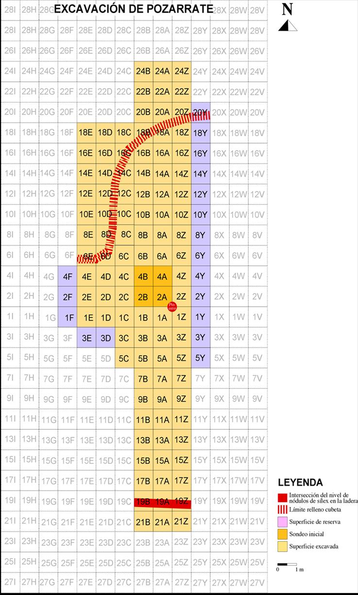 Sierra de Araico is one of the only two prehistoric flint mining complex in the Iberian Peninsula that have provided dates associated to the Neolithic period. Pozarrate archaeological quarry has eight structures classified as crescent-shaped dumps. The archaeological excavation focused on the inferior dump. The two dates were obtained from an antler (5640±30 BP uncalibrated) and from a charcoal (6050±40 BP uncalibrated) (Tarriño et al., 2011a, p.25). During excavation, thousands of artefacts made in Treviño flint have been collected, including several mining tools such as antler picks and dolerite hammer stones.