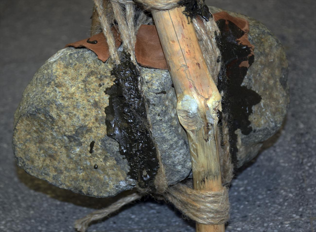 - a hafting process, involving wood sticks, hemp cords of different thickness and a natural glue made from resin, ash and wax;