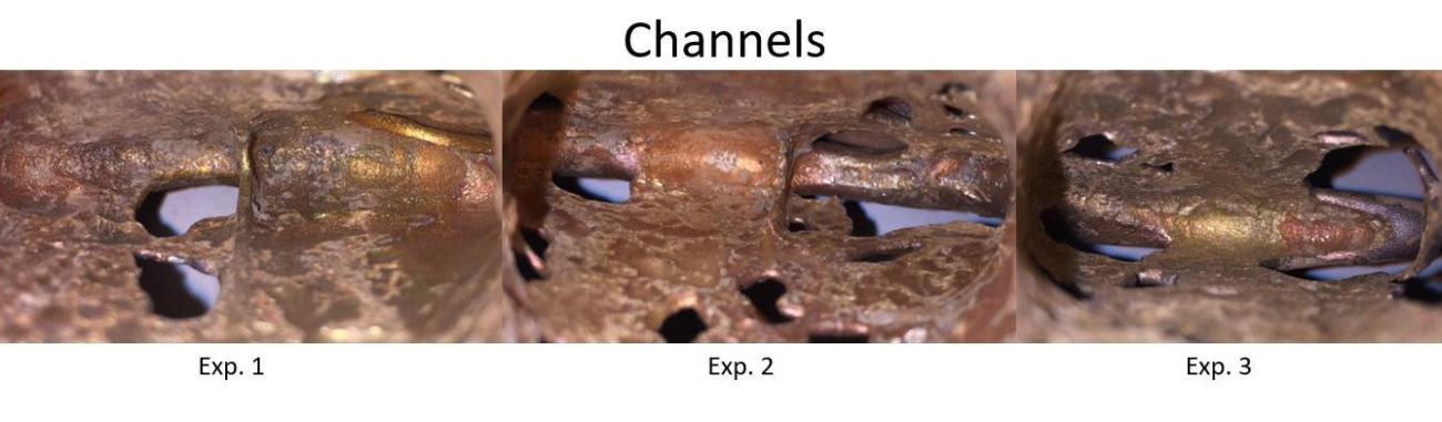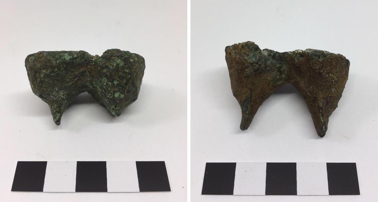 Once the casting process was complete and the moulds broken open, I learned that something had gone wrong. An expulsion of gas causing major defects had occurred consistently throughout all 12 of the moulds rendering them the equivalent of what I can describe only as bronze ‘Swiss cheese’ (See Figure 9). This unintended result did not mean, however, that no useful information came from the project. The result of these trial casts, while insufficiently producing a usable bronze socketed axe, did produce discernible differences in the performance of the methods used to produce the internal rib and gave additional information on the performance of the clay mould in the current approach.