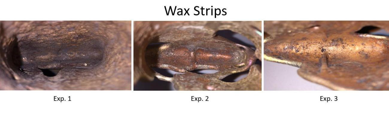 The use of wax suggested by Rynne (1983, p. 49) as a chaplet is seemingly viable considering that beeswax is a natural resource with evidence of its use in prehistory. Wax in an archaeological context has been analysed in ancient Roman (Kimpe, Jacobs and Waelkens, 2002) and Greek (Evershed and Dudd, 2003) contexts revealing itself in pottery and as well in early Egyptian embalming practices (Ménager et al., 2014) among others. In prehistoric European regions however, wax has been somewhat rare and even more so in metallurgical contexts. Interestingly, a recent study in Poland has revealed traces of beeswax on the interior of a bronze mould valve for the casting of a socketed axe (Baron, Miazga and Nowak., 2014). At the very least, this presents reasonable evidence for the use of wax in the bivalve casting process outside of the common cire perdue [lost wax] method that had undoubtedly been employed to create more complex bronze forms (see Auenmüller, Verly and Rademakers, 2019, 142). While the possible use of wax strips suggested by Rynne (Rynne, 1983, p. 49) was confirmed upon testing, the mould materials involved in Late Bronze Age socketed axe casting were never considered, which thereby omitted the critical technical parameters necessary to cast bronze. Altering the mould system in which the internal rib becomes relevant would significantly change the possible reason for internal ribs making any interpretation archaeologically irrelevant.