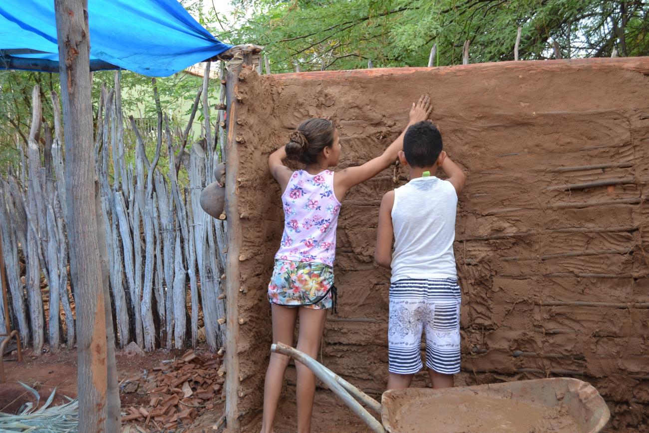 In the memory record research of the people of Serra da Capivara, we identified the techniques of construction of the houses of mud and hand-to-stick mud, consisting of the intertwining of vertical and horizontal (wooden) sticks tied with Caroá fibers and lined with crushed clay (uses water to make the mixture); The cover is made with Bark of Pau (caatinga tree) or palm (carnauba straw). Initially, we performed the entire ethnographic record of the techniques and then incorporated this action into workshops for the public. In the workshop, the public build the walls, intertwines with the fibre, kneads the clay with his feet, and covers the walls with his hands. As a reflection, we discuss the techniques, the types of housing, the reflection of the techniques and the passage of knowledge.