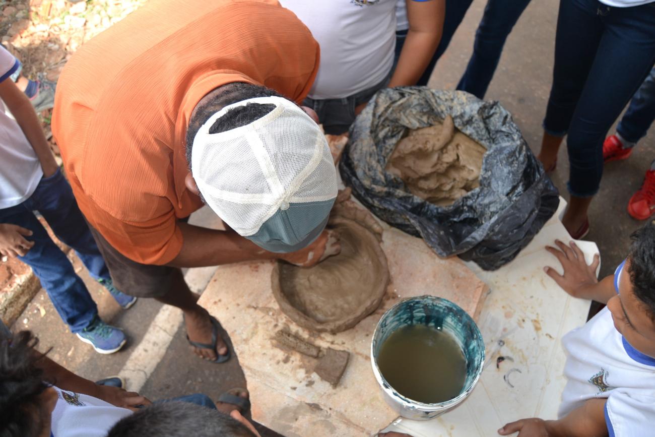This is the most important moment of the workshop, as they add paint to paint on the stone slabs; The handling and modelling of clay and fibre, concerns, curiosities, interpretations and discoveries provoke an understanding of our existence and evolution. Participants raise important questions about how their ancestors lived, how they painted on these rocky walls, what traces were on rocks, how they lived there, what they ate, how they played, how they cured disease, and so on. There is an intense synergy with the knowledge shared in the workshops and direct contact with the archaeological and landscape heritage of Serra da Capivara.