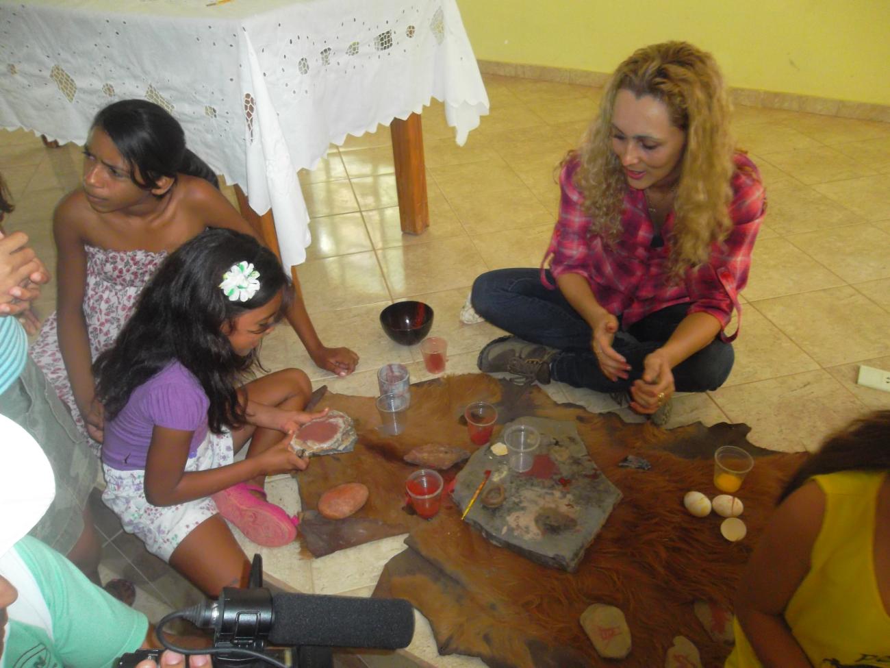 - Painting the community: Using the checkered powder and the binder, derived from egg white, we use stone supports, walls or craft paper panels to express everyday life through drawings, as well as the rock art left on the Sierra's sandstone walls of Capybara.